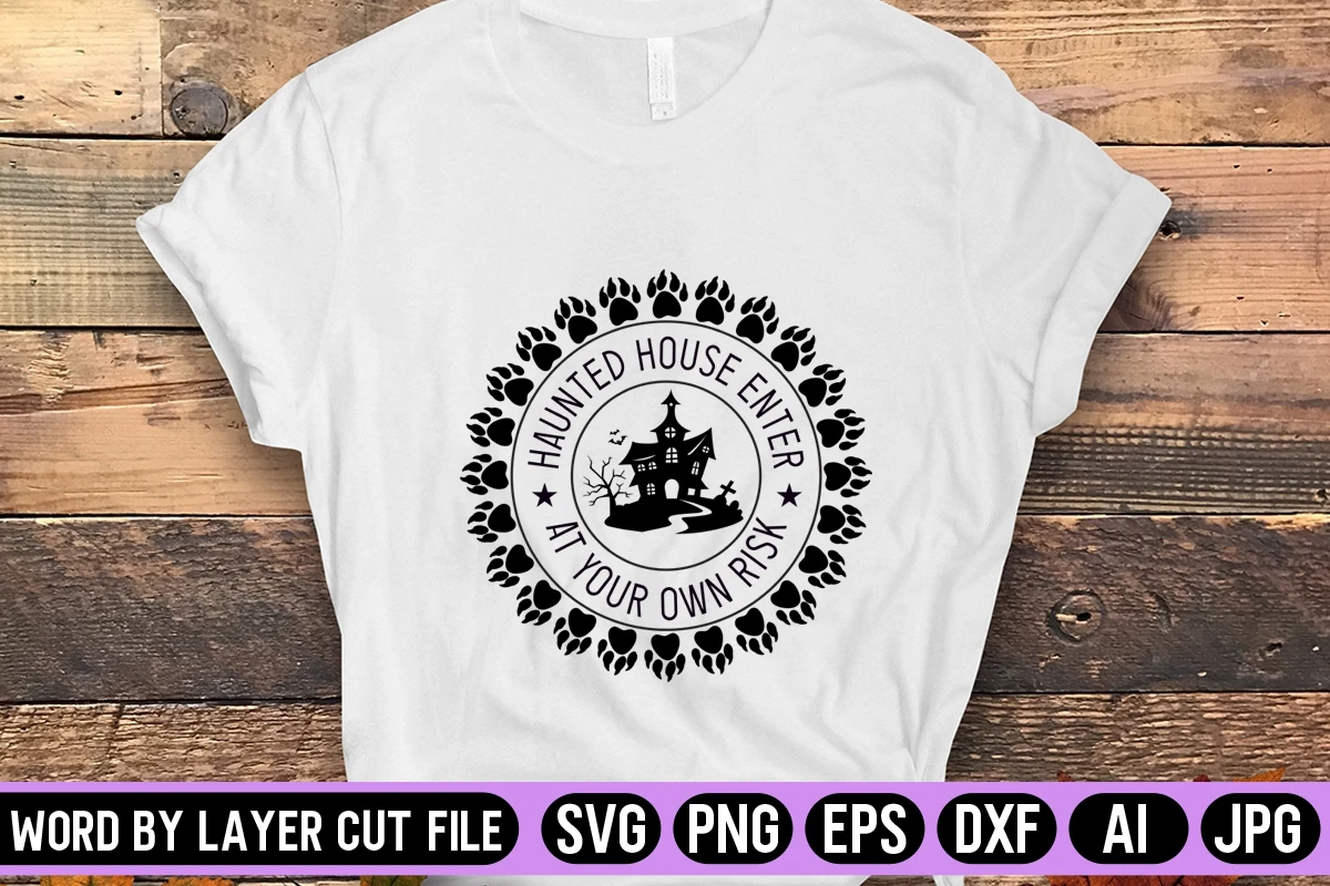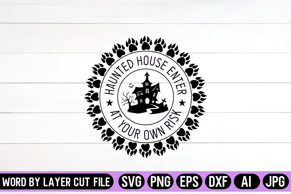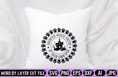 Haunted House Enter At Your Own Risk SVG Round Sing Design