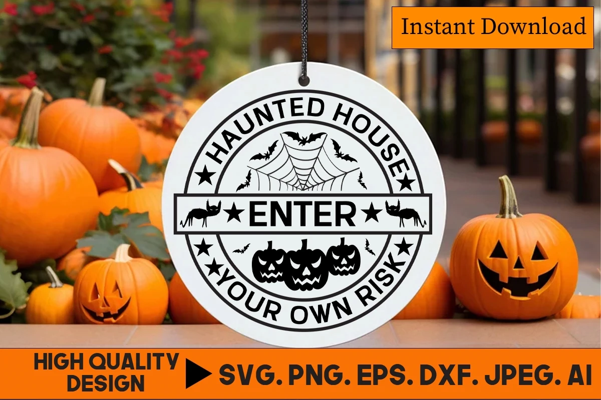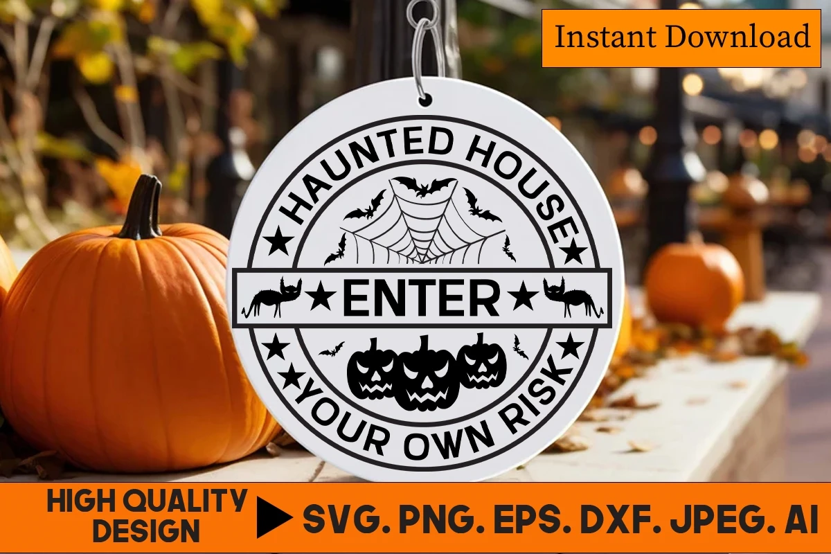 Haunted House Enter Your Own Risk Halloween Round Sign SVG