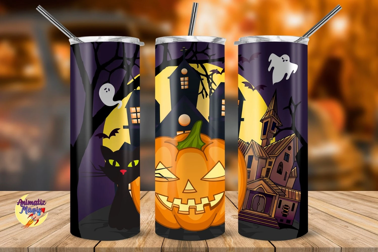 Haunted House Purple Background 20 oz Skinny Tumbler Wrap