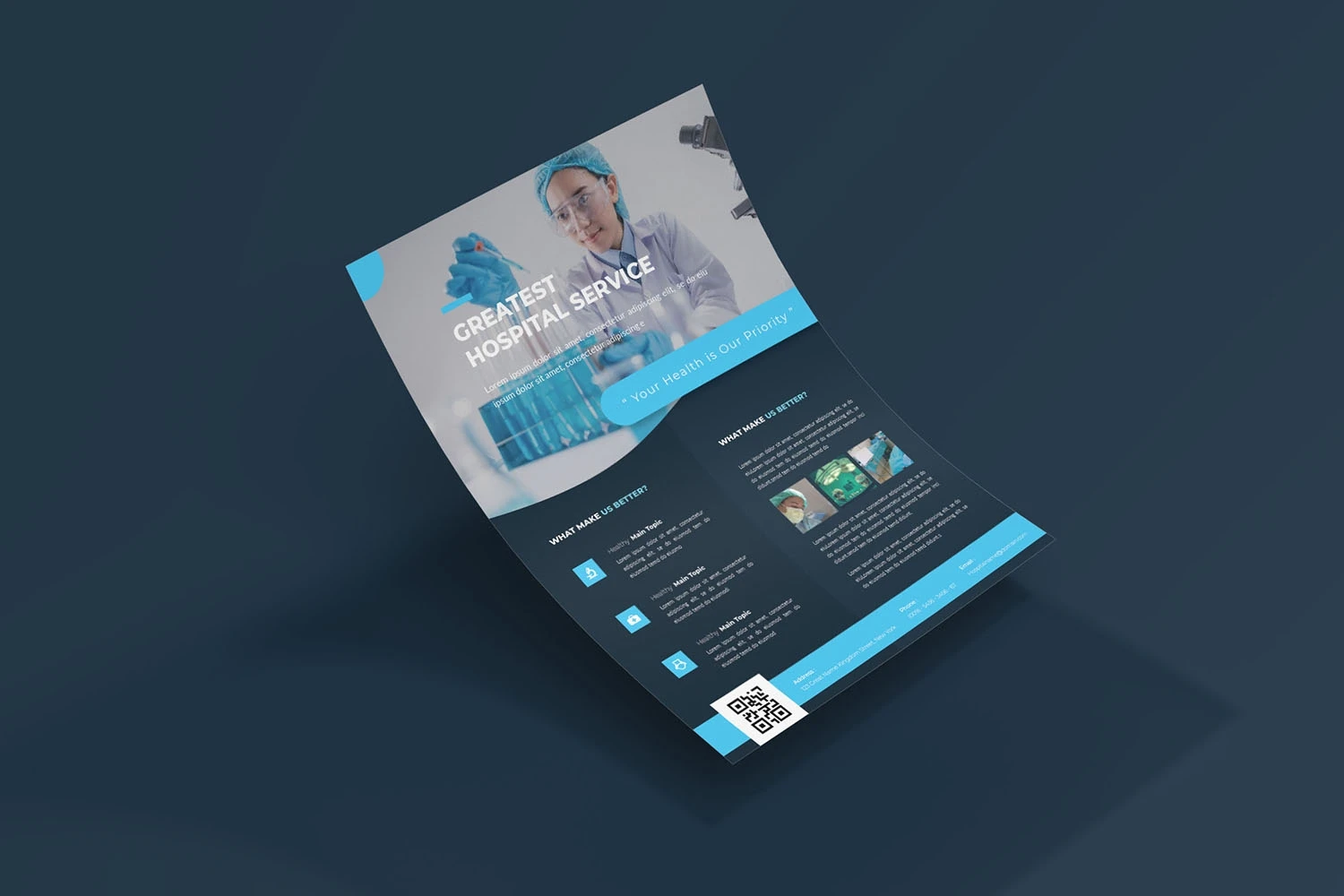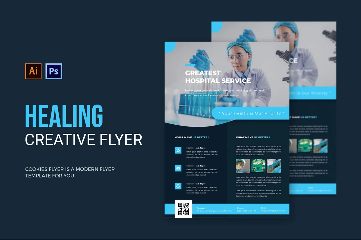 Healing Hospital - Flyer. This Flyer template is designed for your company's business needs. very clean and elegant, and also easily edited and adjusted to your liking