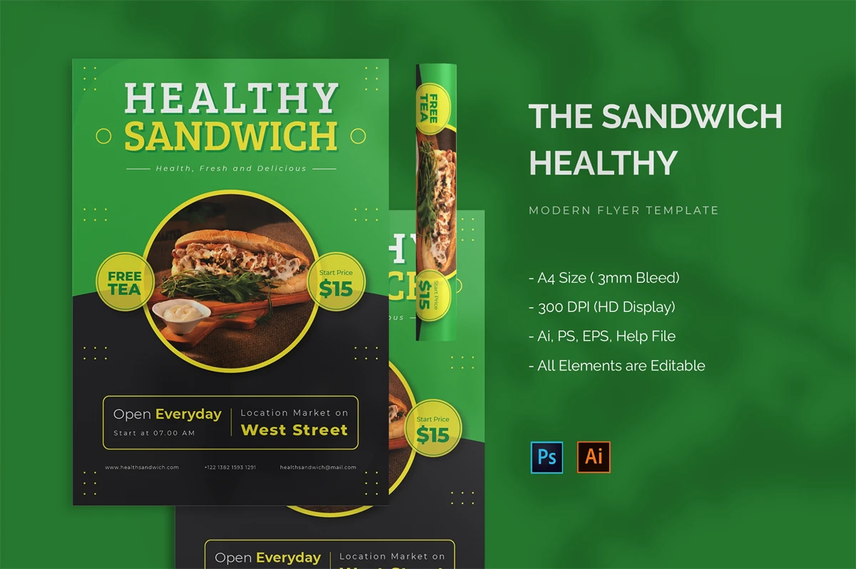 Health Sandwich - Flyer. This Flyer template is designed for your company's business needs. very clean and elegant, and also easily edited and adjusted to your liking