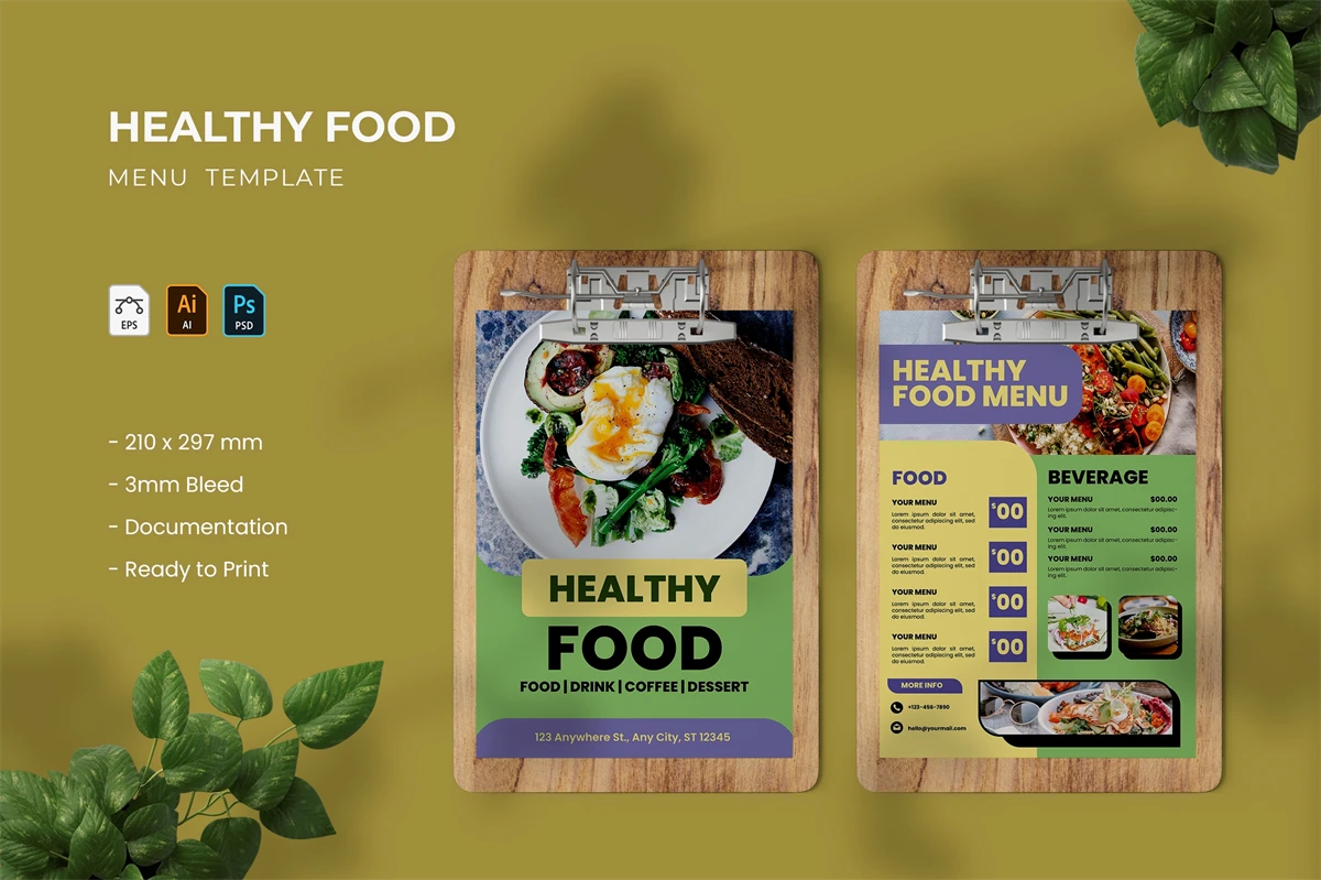 Menu Restaurant Template is a menu template for people who sell, business, or run a food-related business. The layout makes it easy to find the menu you want. Too many choices can make customers feel overwhelmed, so its better to limit the number of choices, colors, and other design elements so that customers can easily scan and order items.
