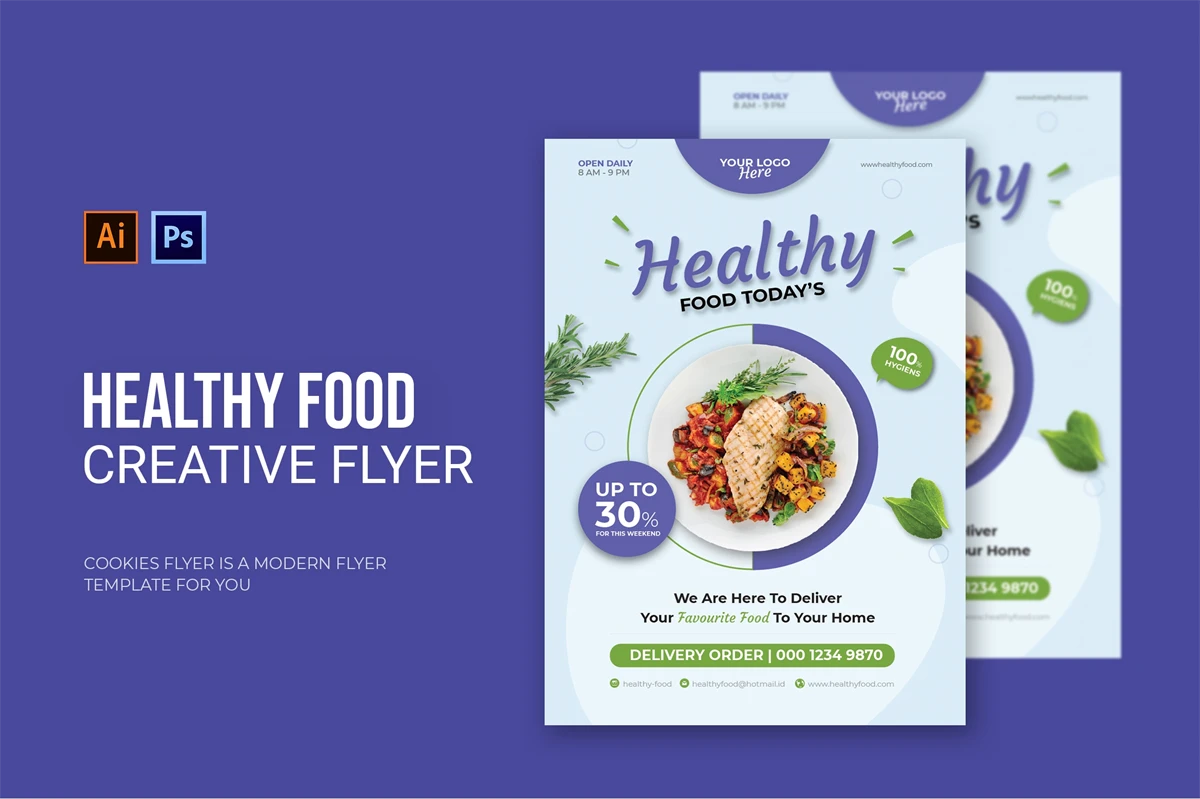 Healthy Food Today - Flyer. This Flyer template is designed for your company's business needs. very clean and elegant, and also easily edited and adjusted to your liking