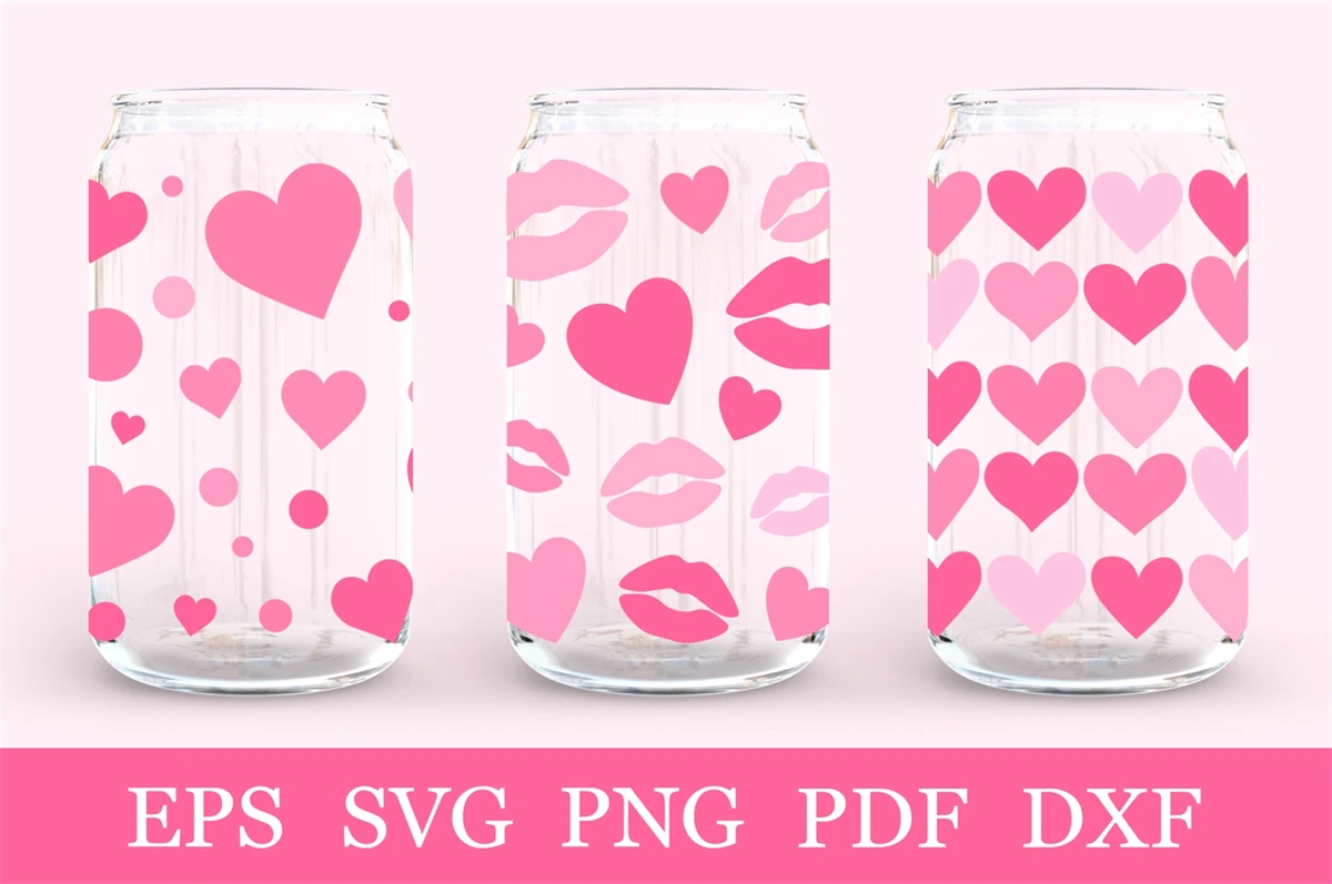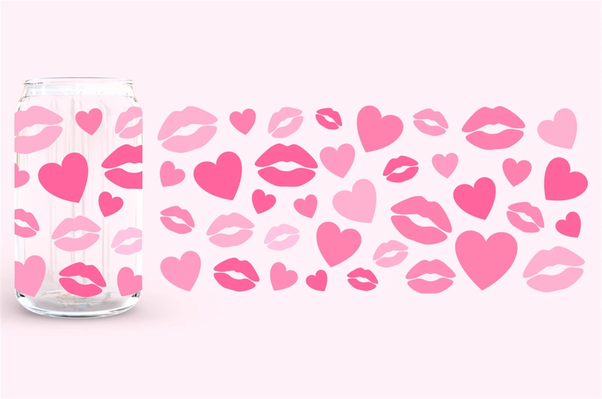 Valentines Can Glass Wrap. Hearts Can Glass. Lips Can Glass