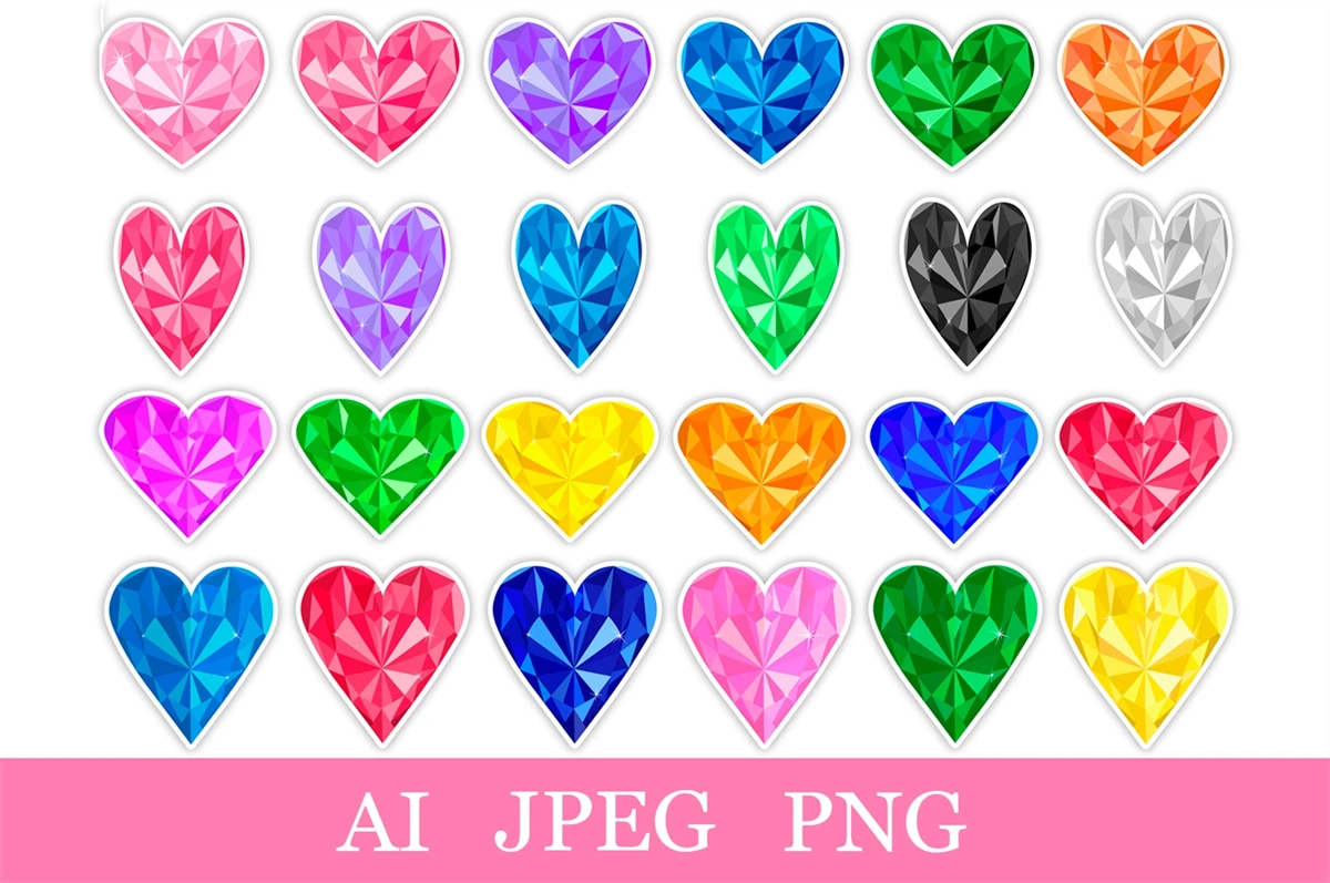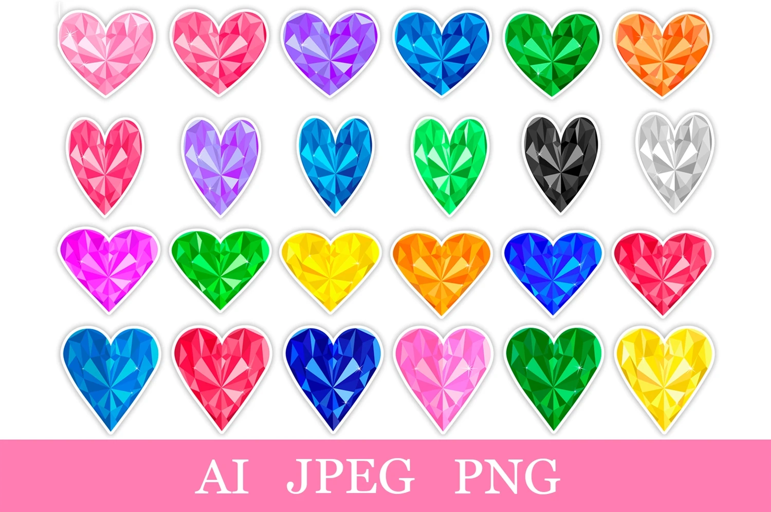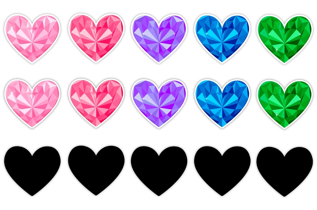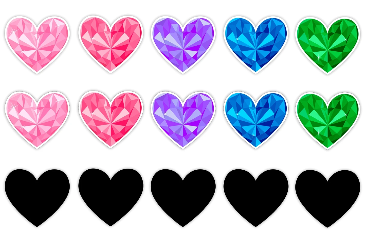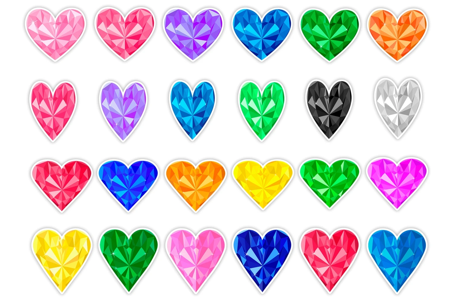 Hearts gemstone Sticker Printable bundle PNG. Heart diamonds