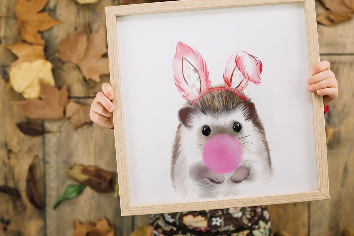 Hedgehog with bubblegum