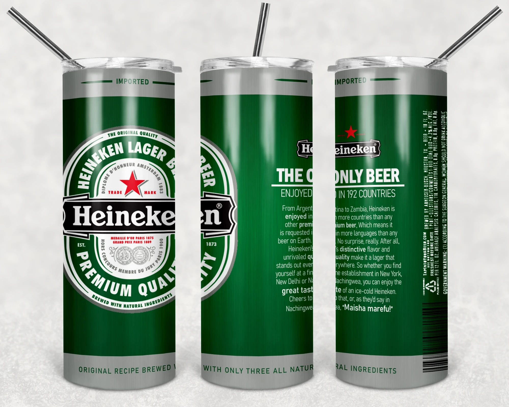Heineken Beer Tumbler Png, 20oz & 30oz Skinny