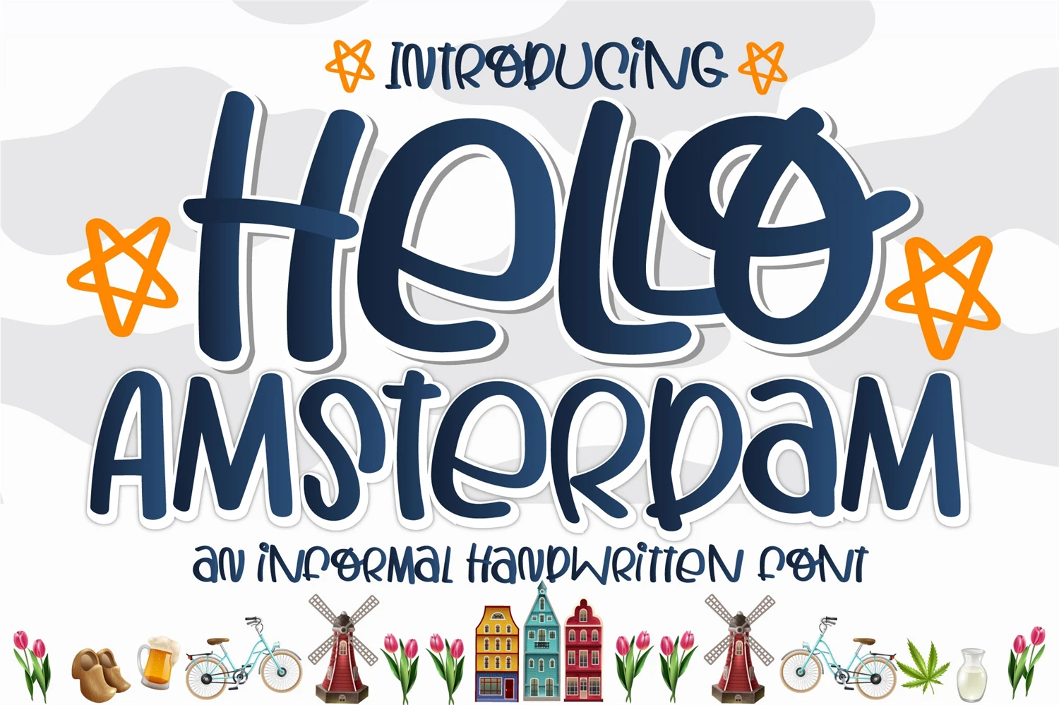Hello Amsterdam Font is an informal, cute modern, fashionable, friendly, and trendy handwritten font. With its playful yet versatile style, Hello Amsterdam adds a delightful touch to any design project. Whether you're creating greeting cards, invitations, logos, social media posts, or anything in between, this font brings a casual and adept vibe to your work. Its handwritten charm and contemporary appeal make it a perfect choice for those seeking a touch of personality in their designs. Embrace the trendy vibes of Hello Amsterdam Font and let your creativity shine!