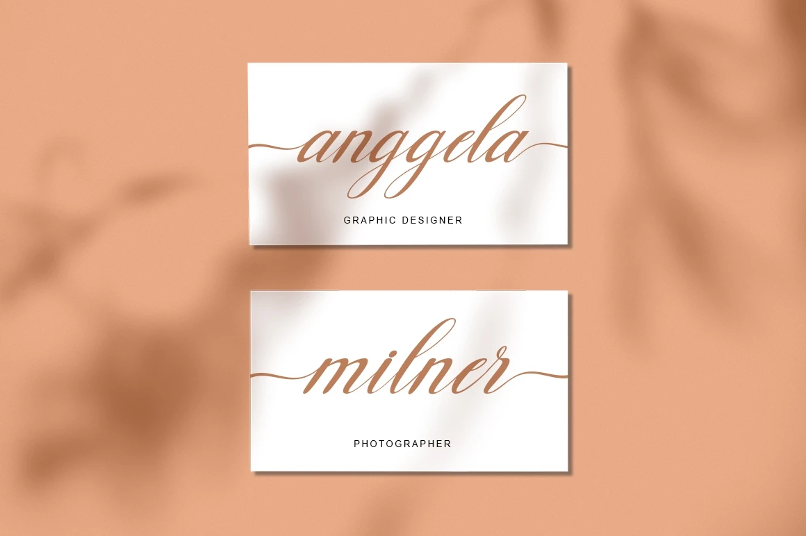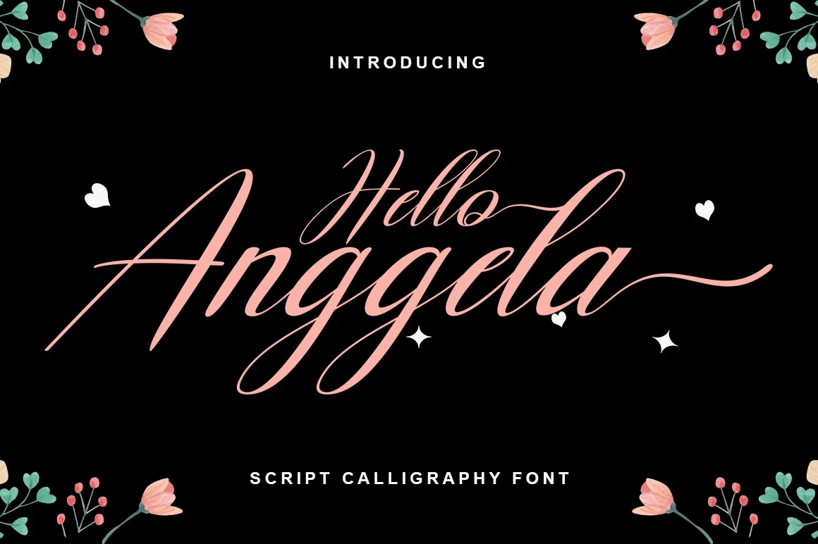 Hello Anggela Script a new fresh & modern script with a handmade calligraphy style, decorative characters and a dancing baseline! So beautiful on invitation like greeting cards, branding materials, business cards, quotes, posters, and more!!