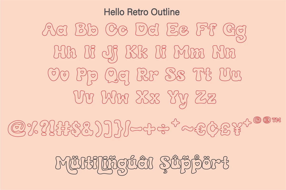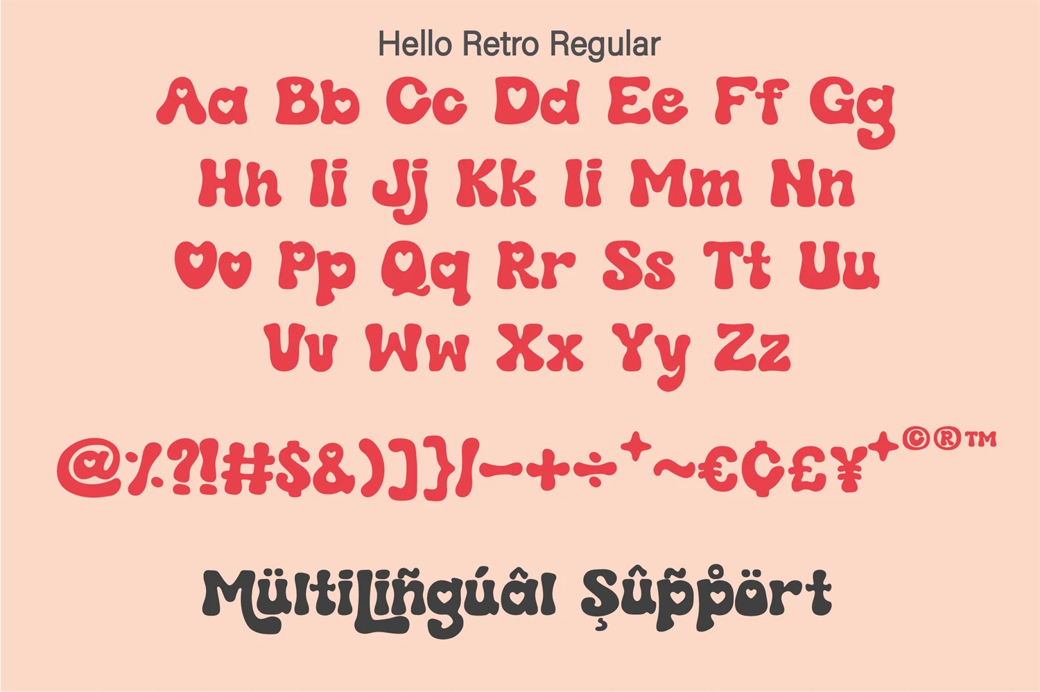 Hello Retro is a groovy style display font with heart details. Add it to your creative ideas and you will definitely love the results!