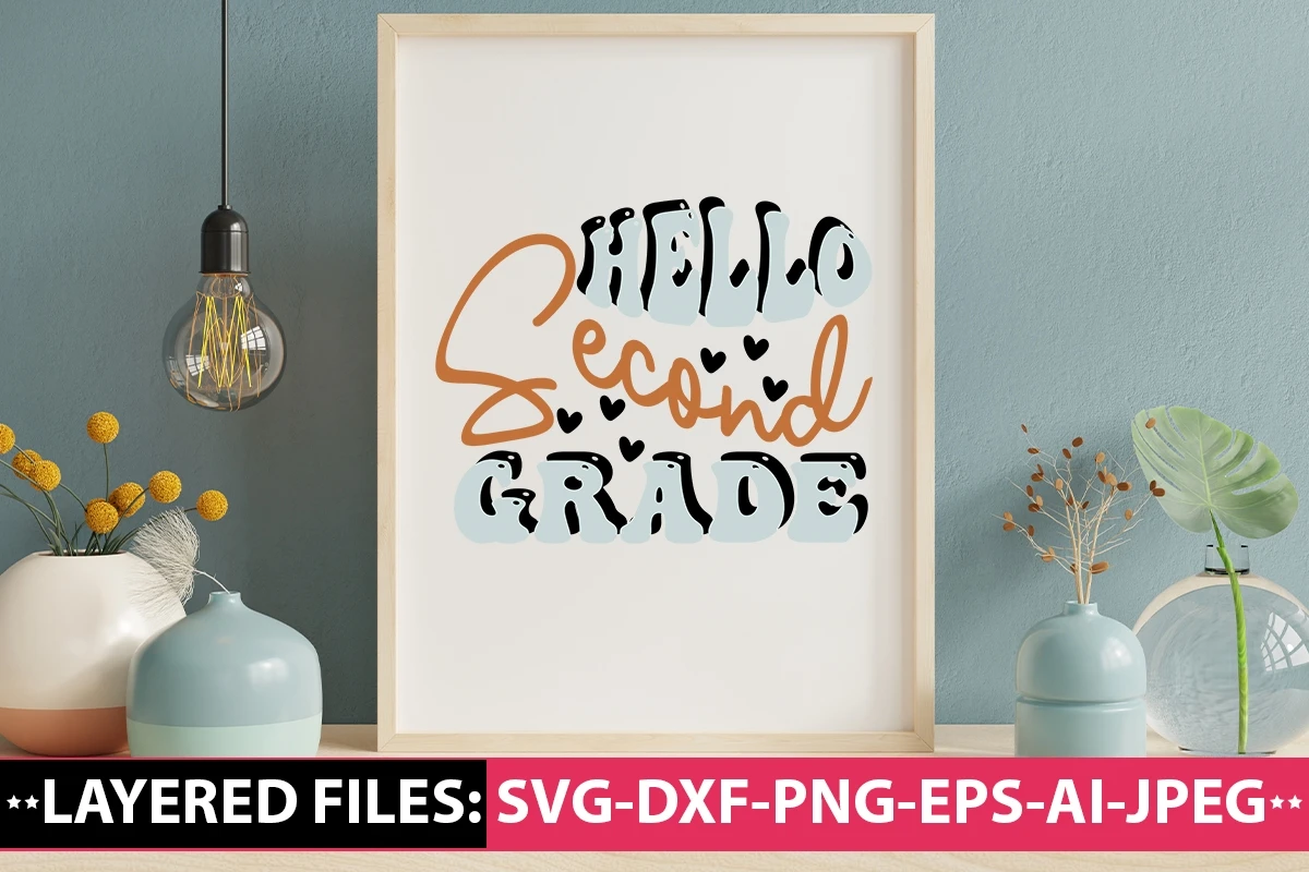 Hello Second Grade RETRO SVG Design, Retro t-shirt design