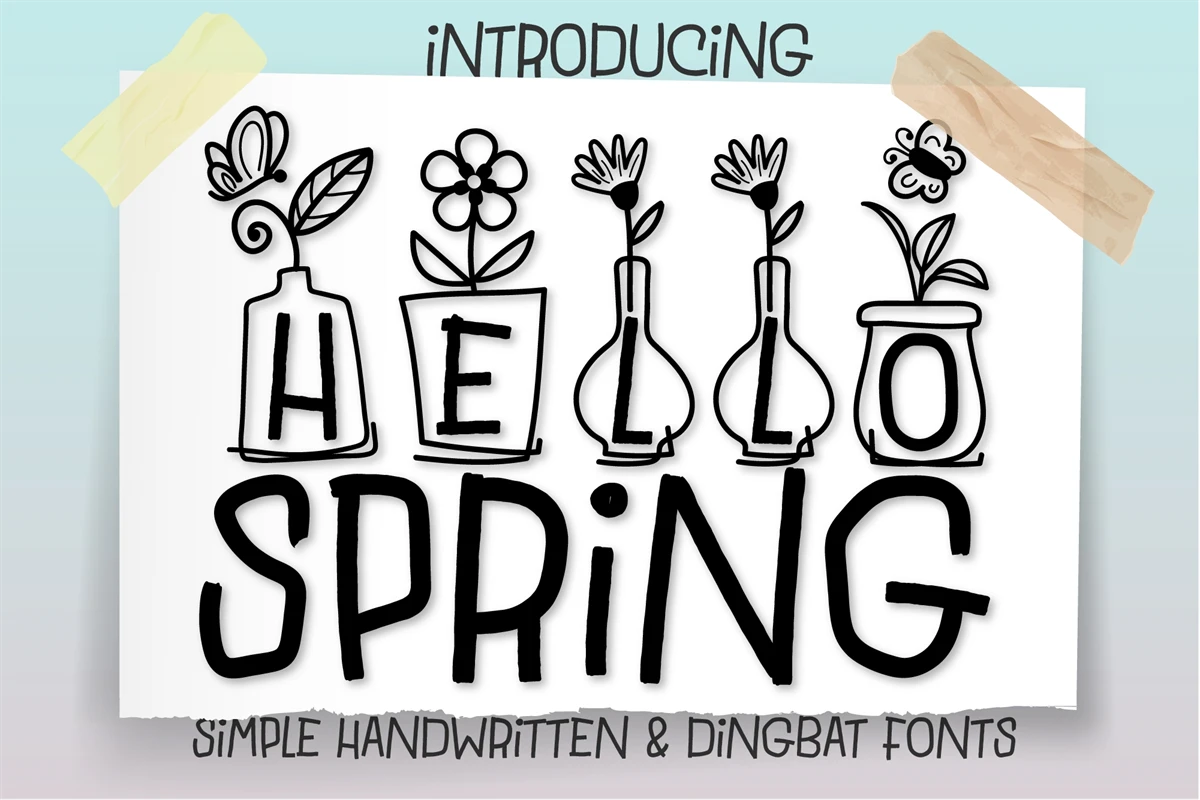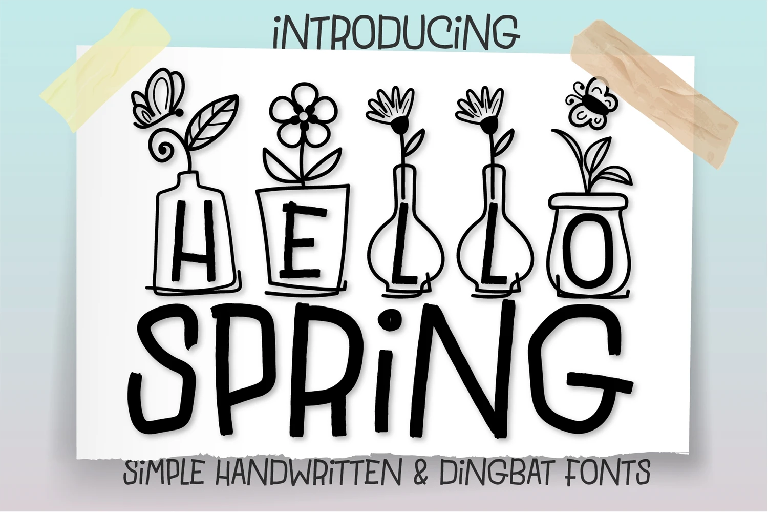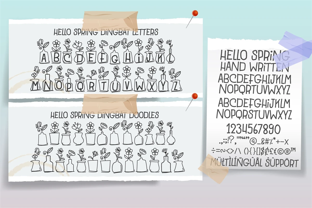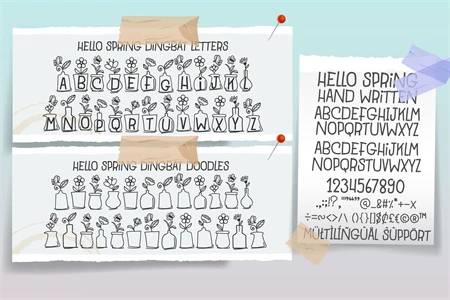 Hello Spring is a fun and playful trio font (Dingbats, decorative and handwritten.) The handwritten characters are casual and quirky, while the decorative characters embody endless fun in farmhouse-related objects. Get creative, and use this font to create something spectacular!