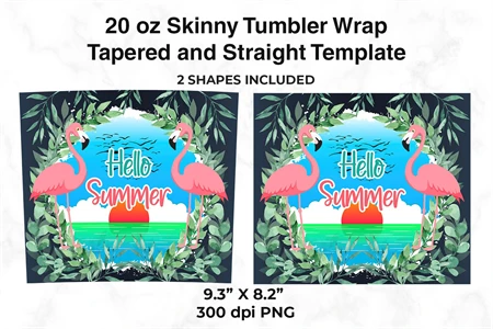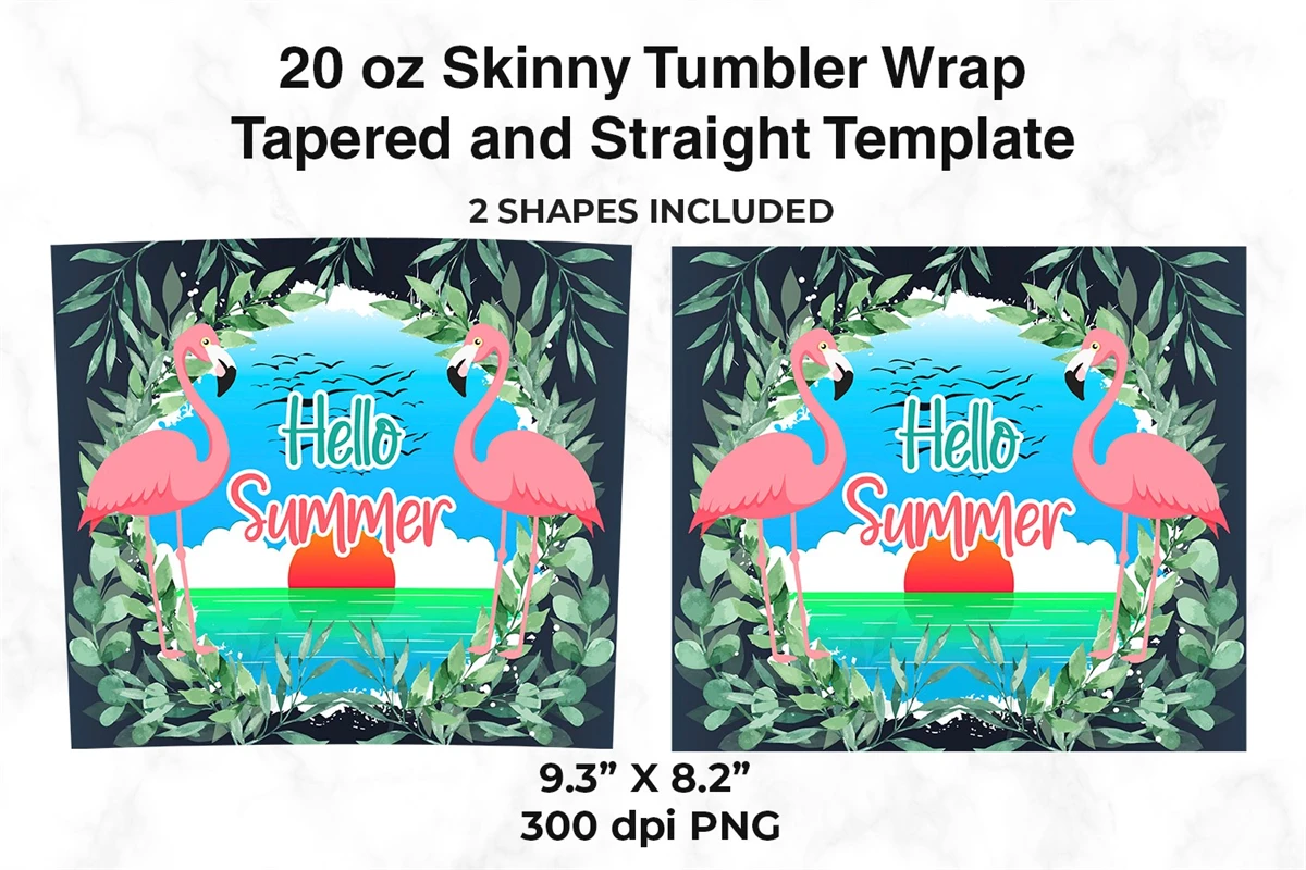 Hello Summer Flamingos Sunset Tumbler Wrap Design Navy Blue