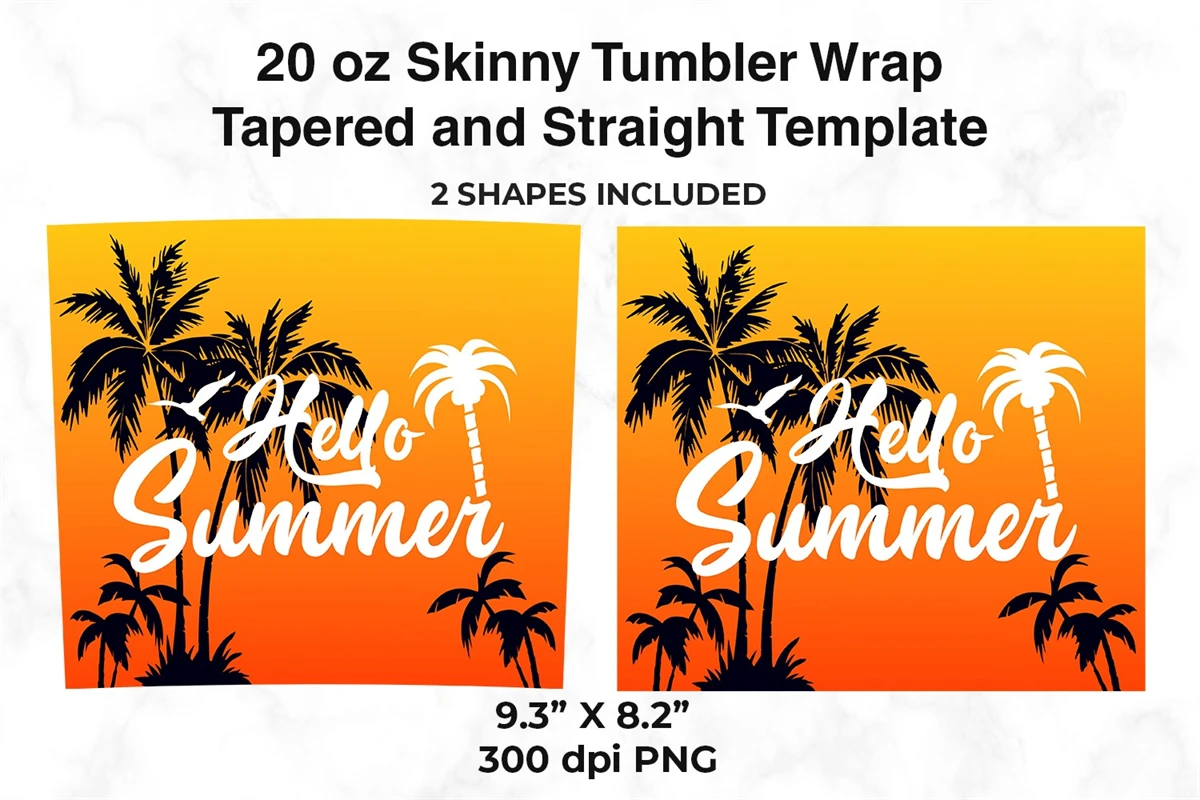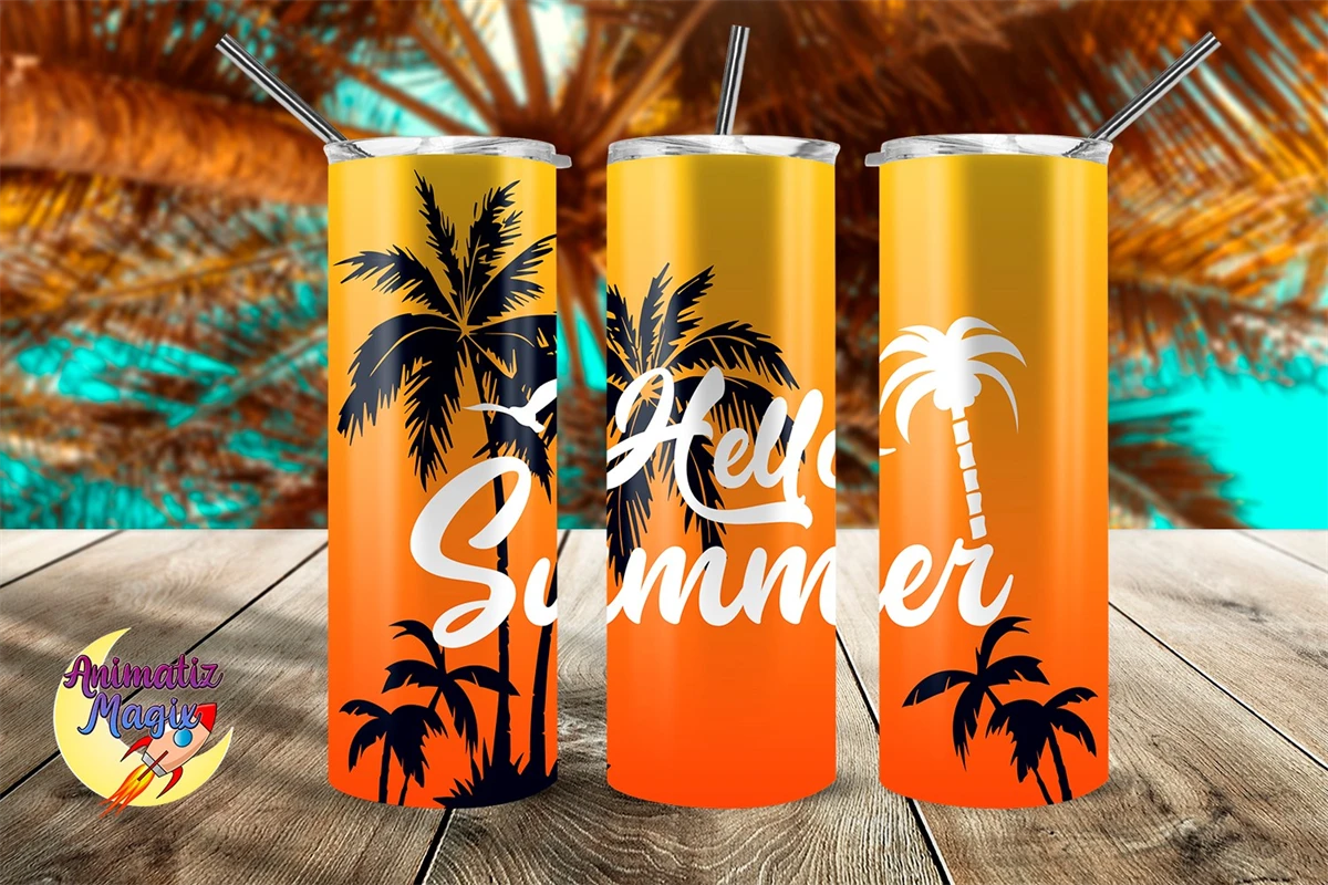Hello Summer Tropical Sunset Tumbler Wrap Design Orange