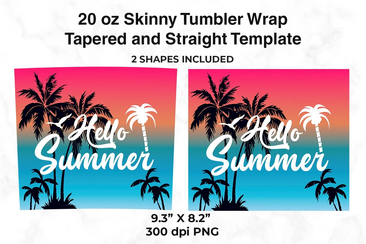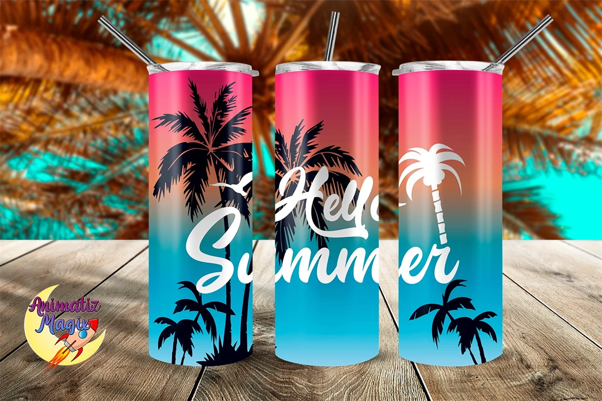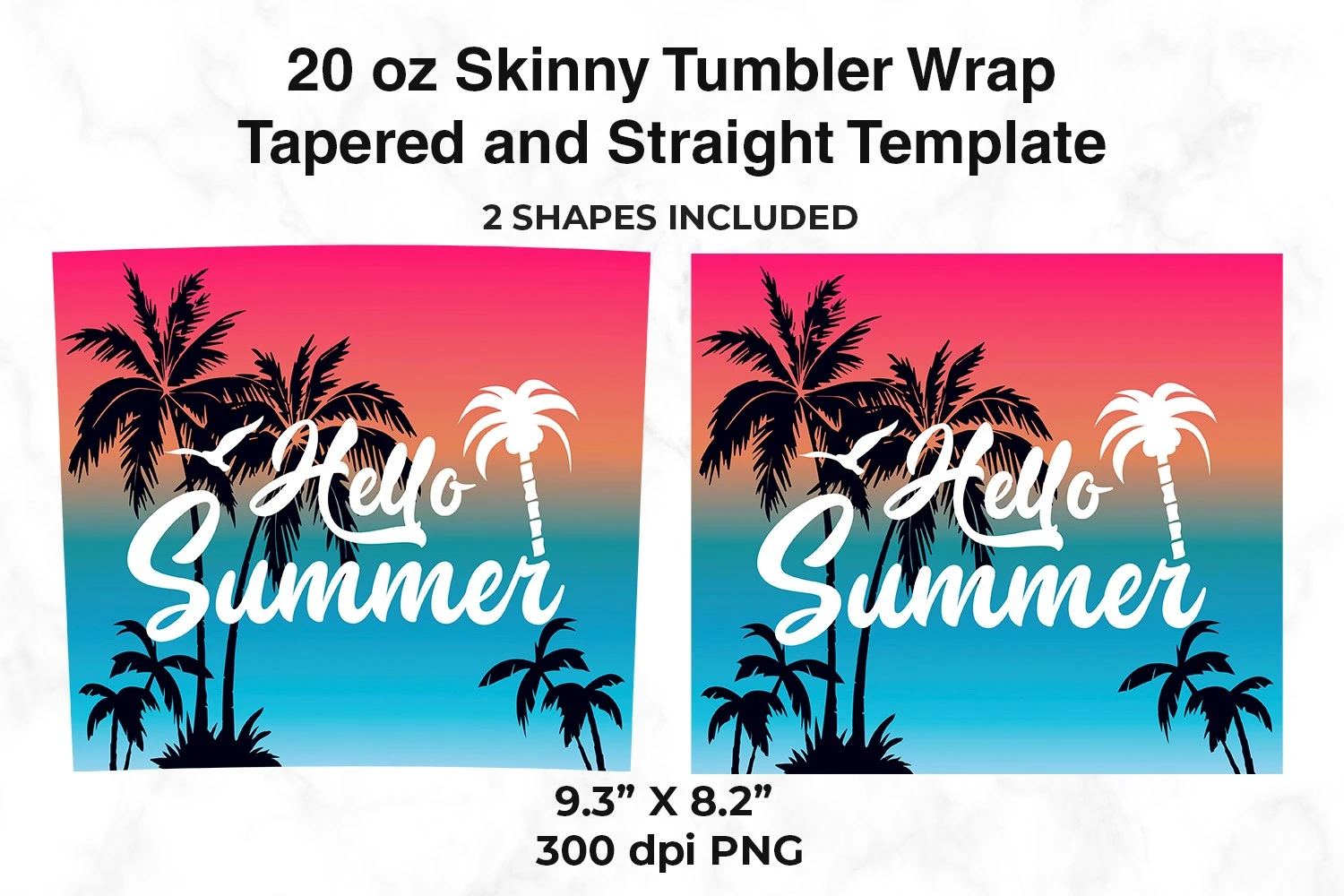 Hello Summer Tropical Sunset Tumbler Wrap Pink & Blue
