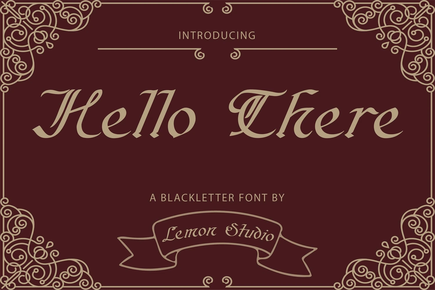 Hello There is an incredibly authentic and daring blackletter font. Add this font to your favorite creative ideas and notice how it makes them stand out!