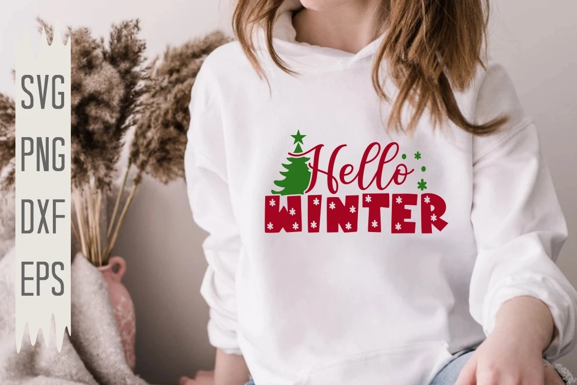 Hello Winter Svg, Winter Svg, Winter Door Sign, Christmas