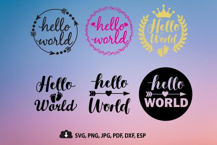 Hello World Svg, Baby Svg, Hello World Clipart, Newborn, Hello World Bundle, Baby Shower, Baby, Boy, Baby, Girl, Silhouette, Cut file