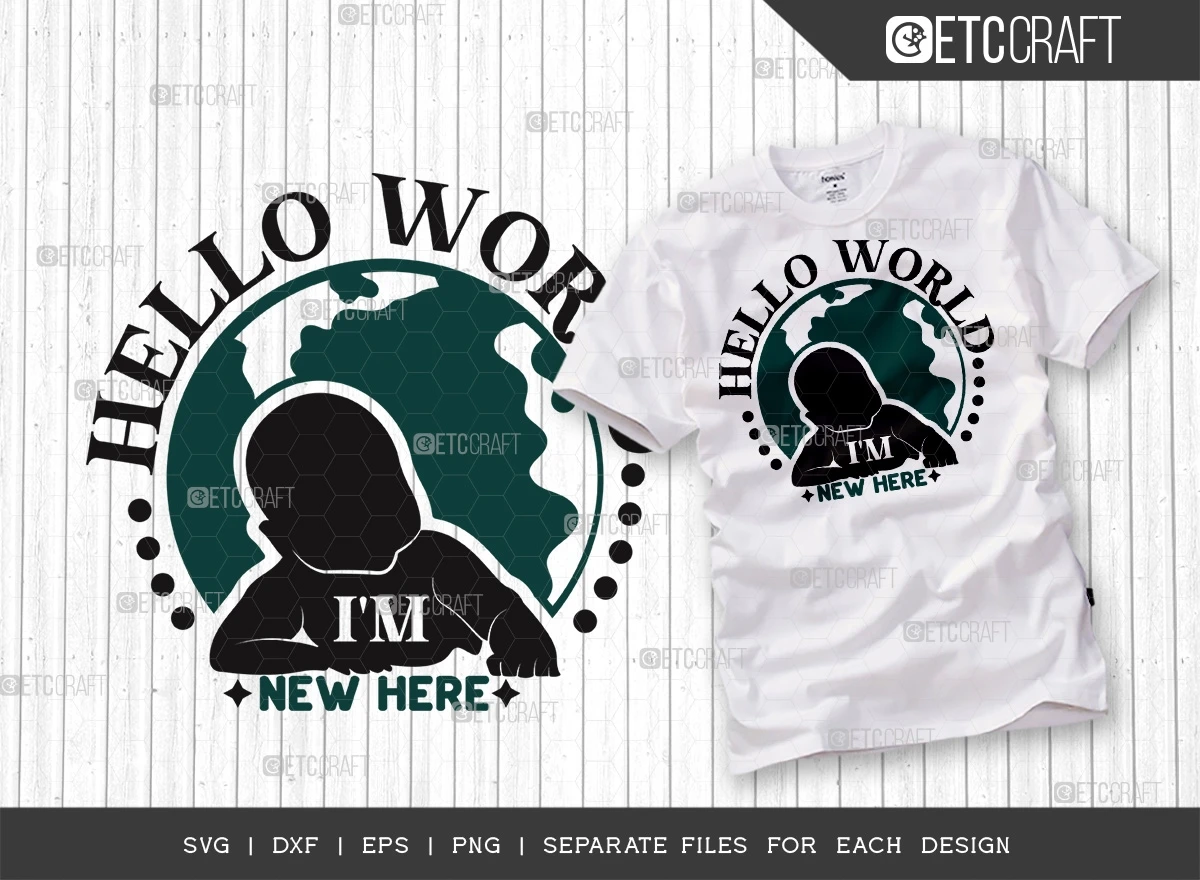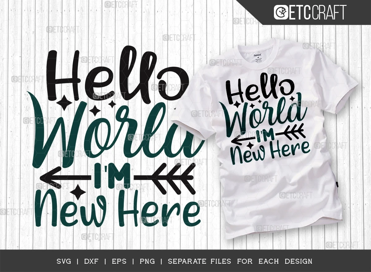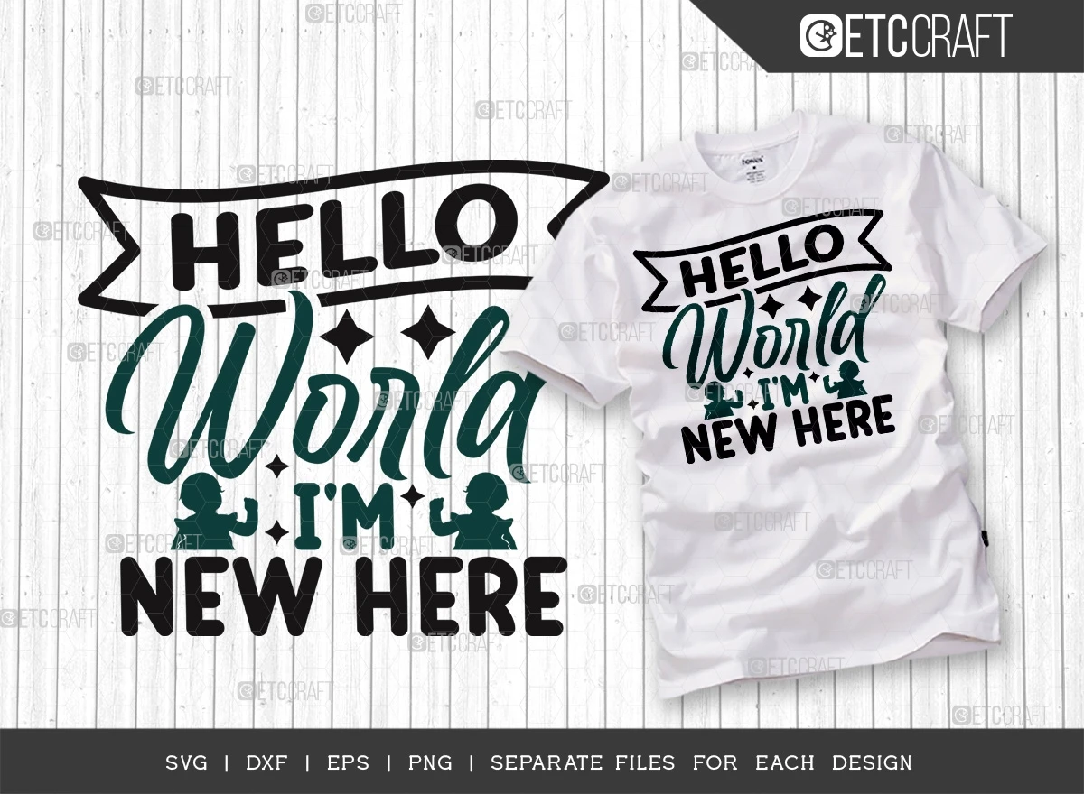"Hello World I'm New Here" SVG Bundle T-Shirt Design! This adorable and versatile design is perfect for celebrating the arrival of a newborn and making a statement.
