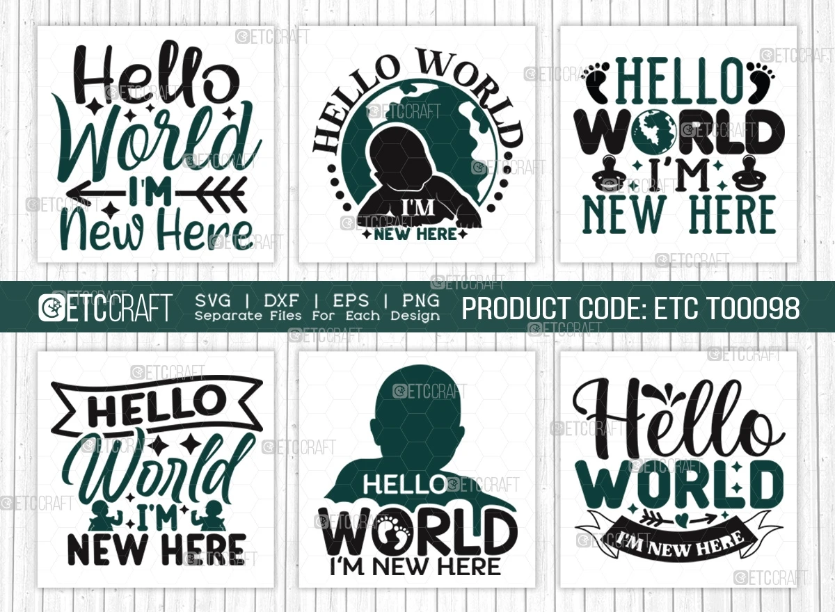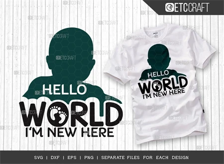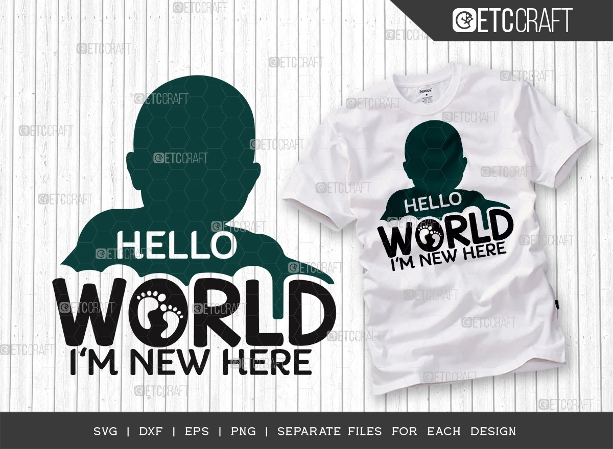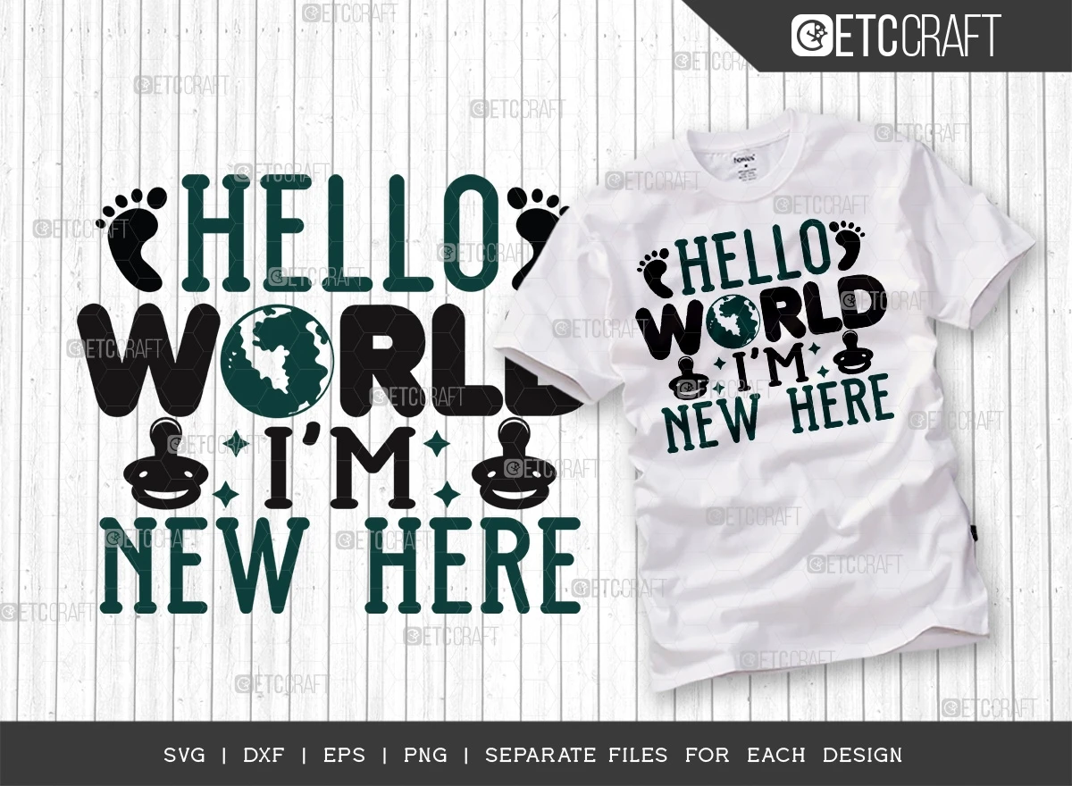 "Hello World I'm New Here" SVG Bundle T-Shirt Design! This adorable and versatile design is perfect for celebrating the arrival of a newborn and making a statement.