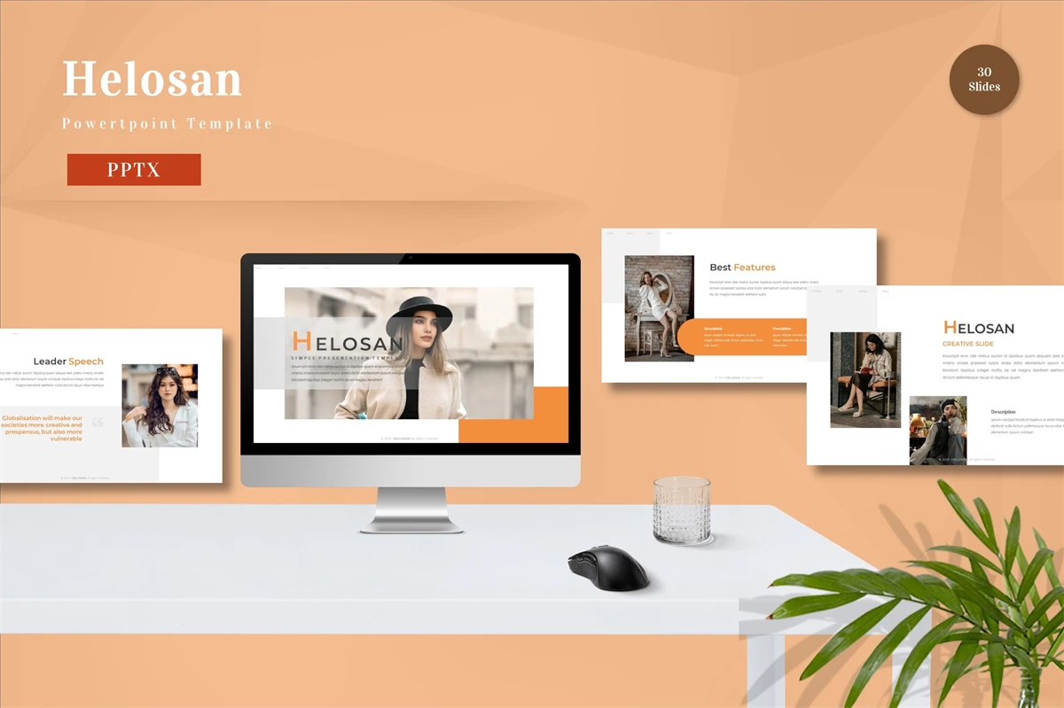 Get it now! **Helosan - Powerpoint Template** for All Business and Personal Needs All elements on this template are editable; input your content, replace your image with a placeholder, change the color, and all presentations include an animated slide to present your slides.
