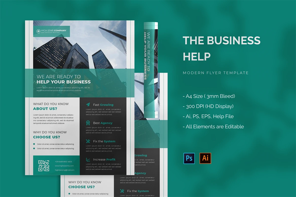 Help Business - Flyer. This Flyer template is designed for your company's business needs. very clean and elegant, and also easily edited and adjusted to your liking