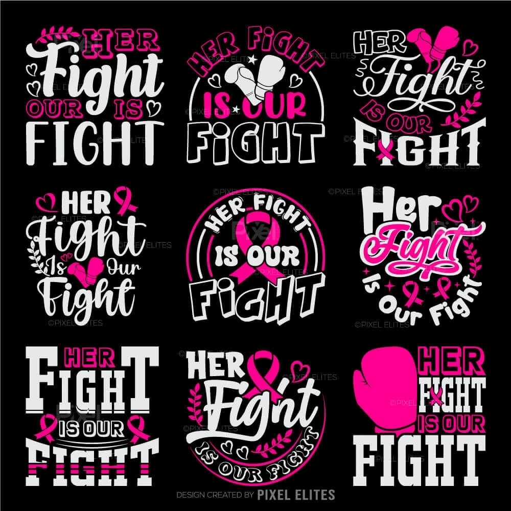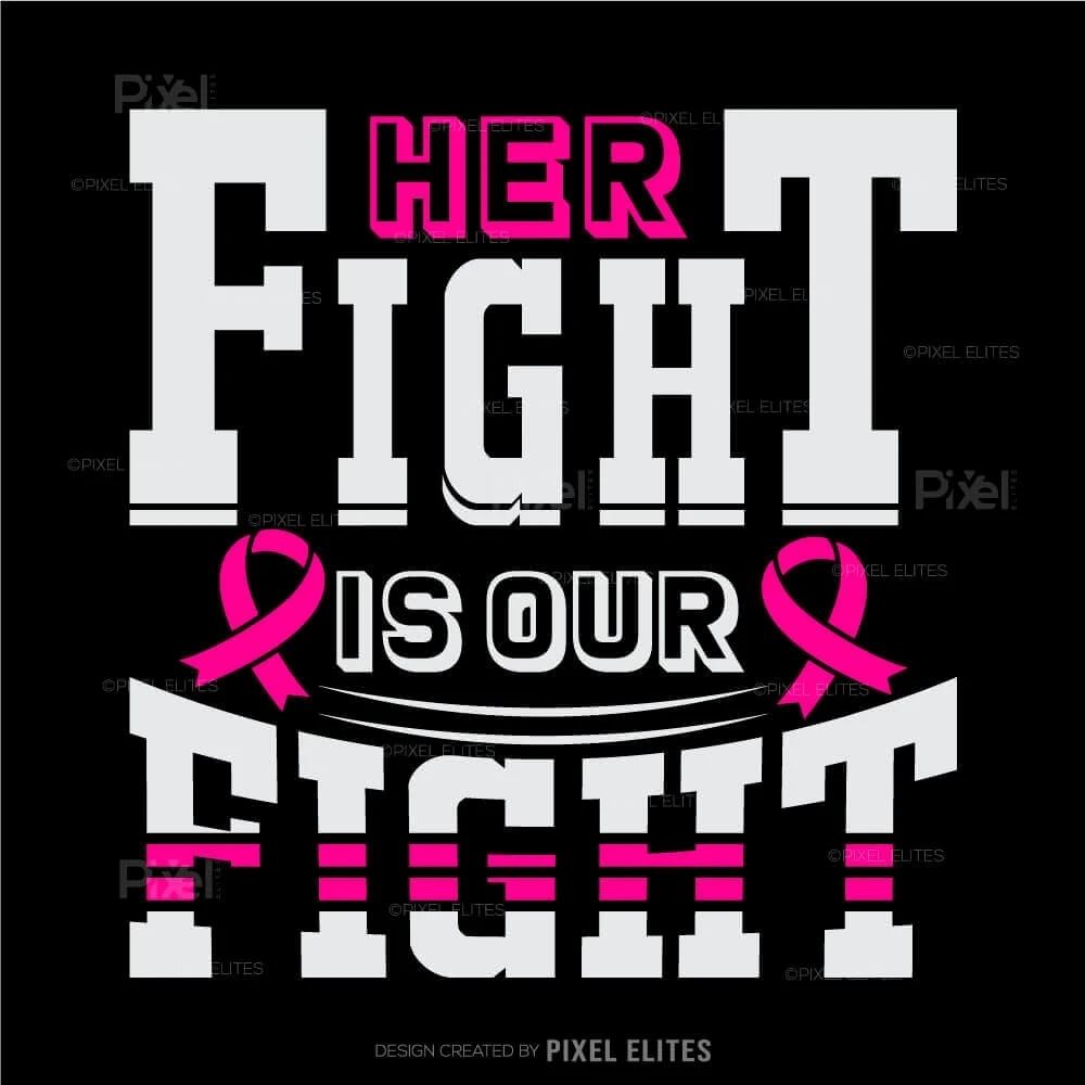 Show your support and solidarity with the Her Fight Is Our Fight SVG Cut Files for T-Shirt Design. This powerful and heartfelt design is perfect for creating custom apparel, decals, and gifts that raise awareness and encourage unity in the fight against cancer.