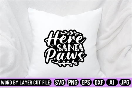 Here Santa Paws Sticker SVG Design