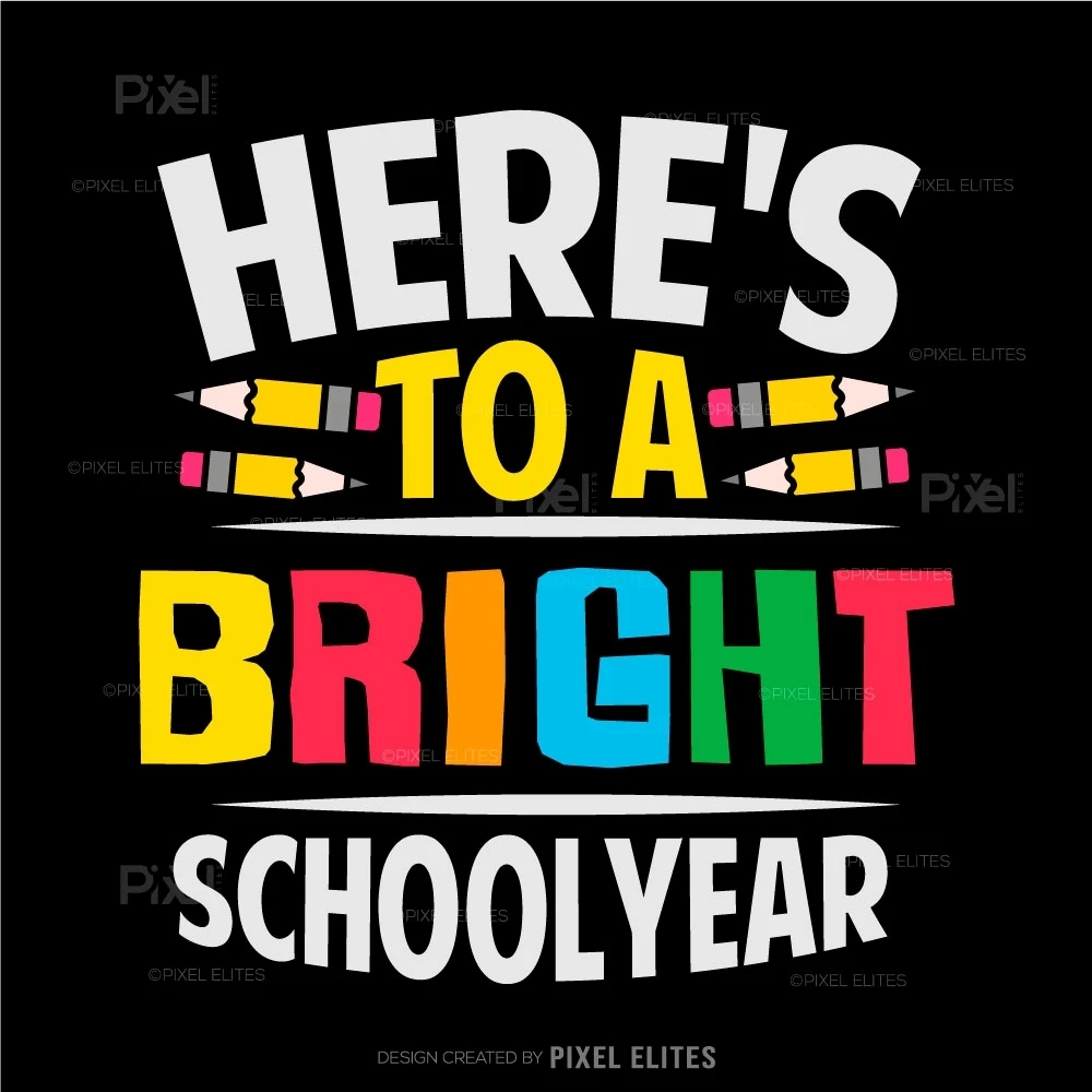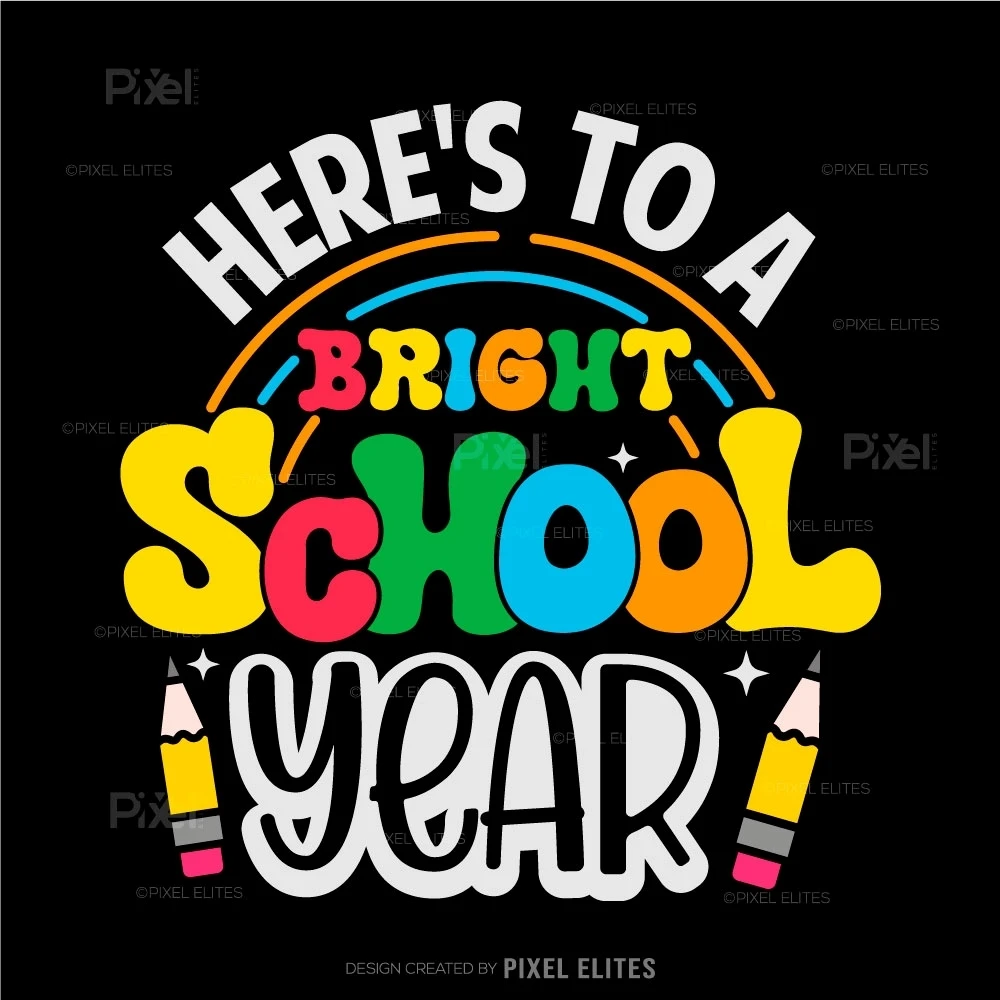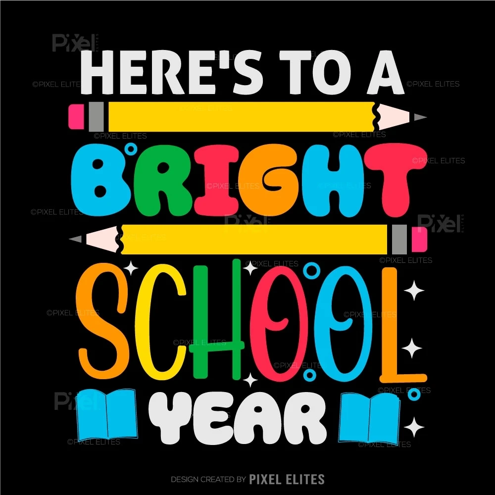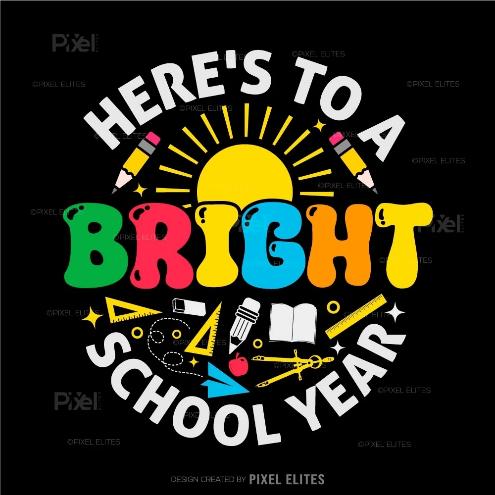 Kick off the year with positivity using this Heres To A Bright School Year SVG design! Perfect for teachers, classrooms, and students, this uplifting quote is great for creating first day shirts, school posters, bulletin boards, mugs, tote bags, stickers, party favors, and sublimation gifts.