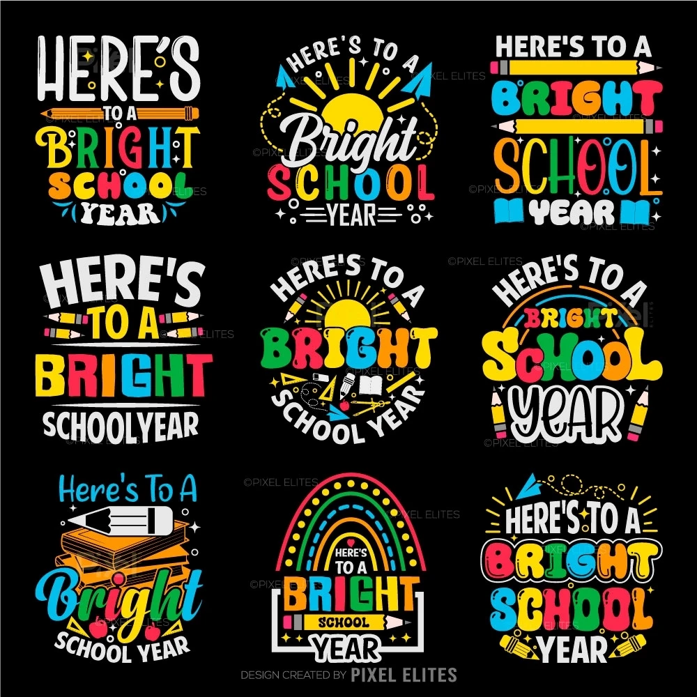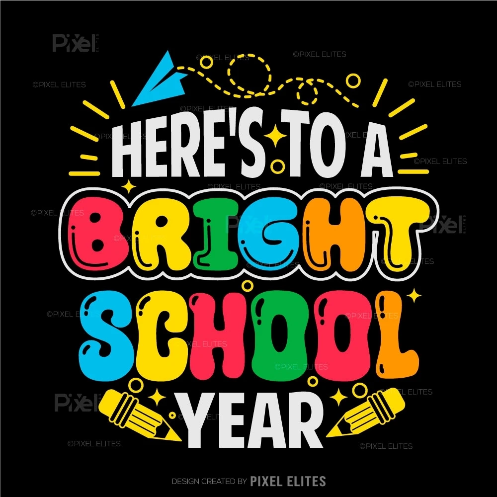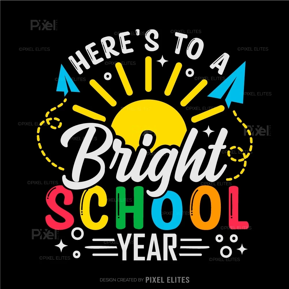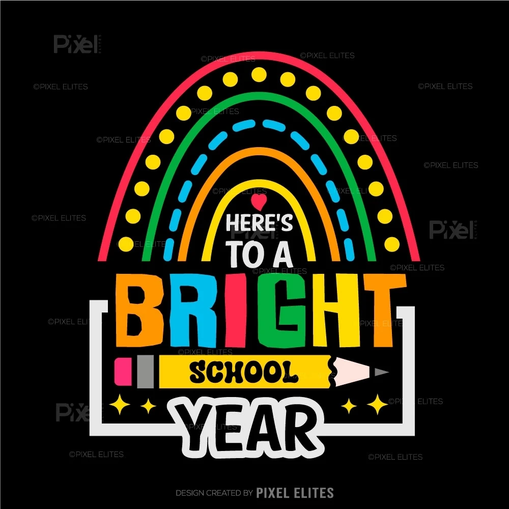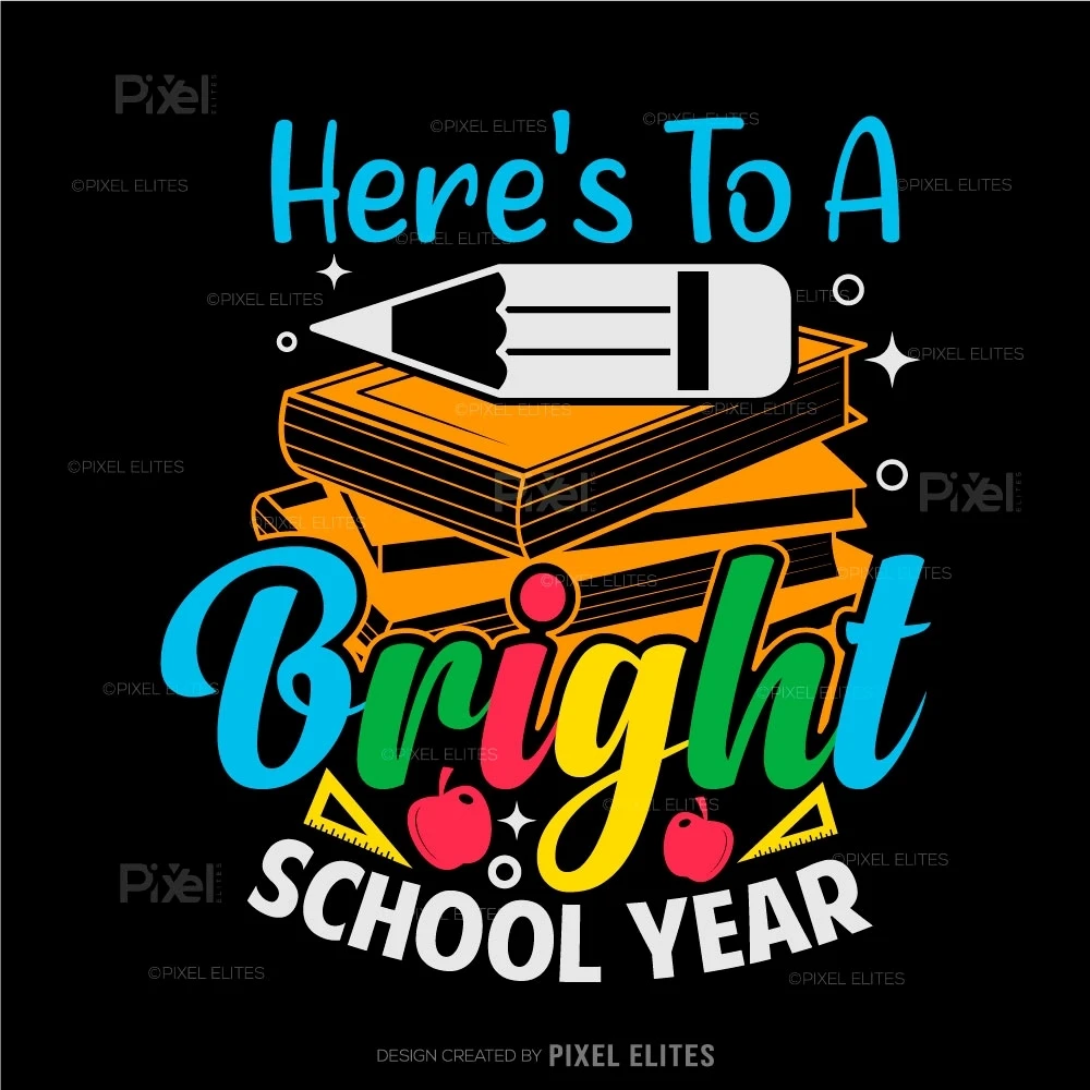 Kick off the year with positivity using this Heres To A Bright School Year SVG design! Perfect for teachers, classrooms, and students, this uplifting quote is great for creating first day shirts, school posters, bulletin boards, mugs, tote bags, stickers, party favors, and sublimation gifts.