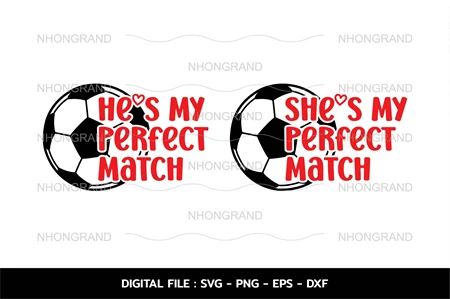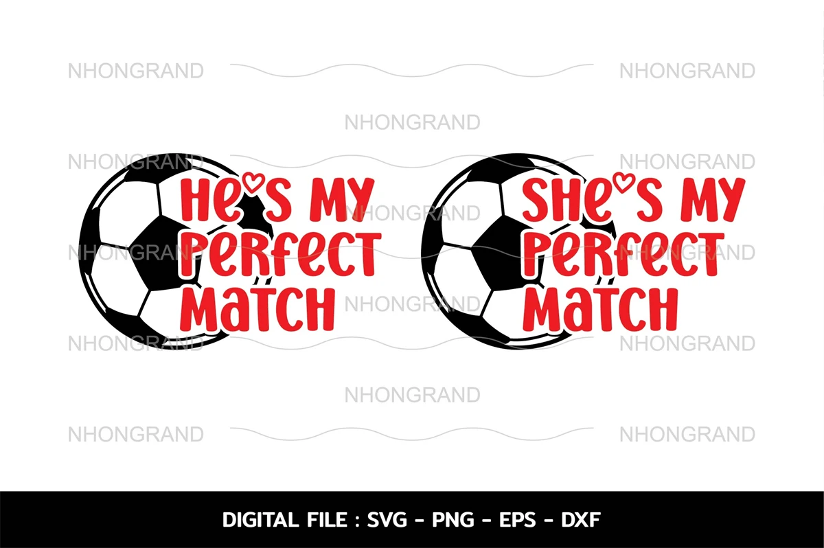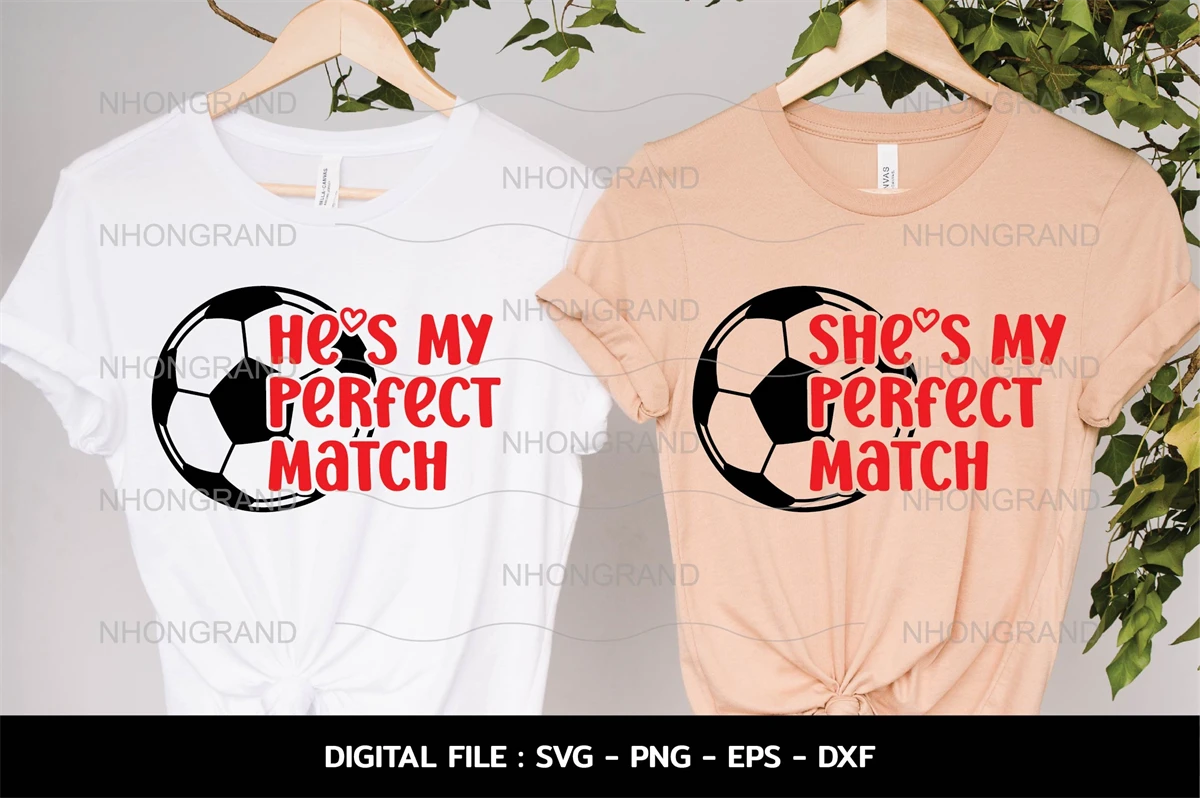 He's my perfect match and She's my perfect match funny couple shirt with soccer, lover gift, t-shirt, Cricut, svg, png, eps, dxf, Download
