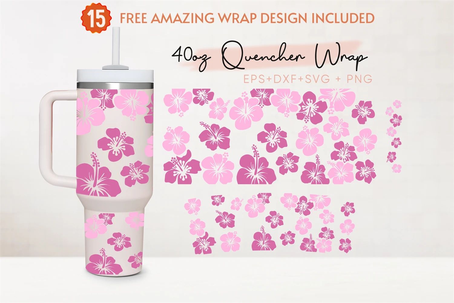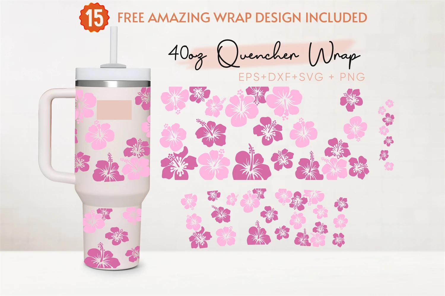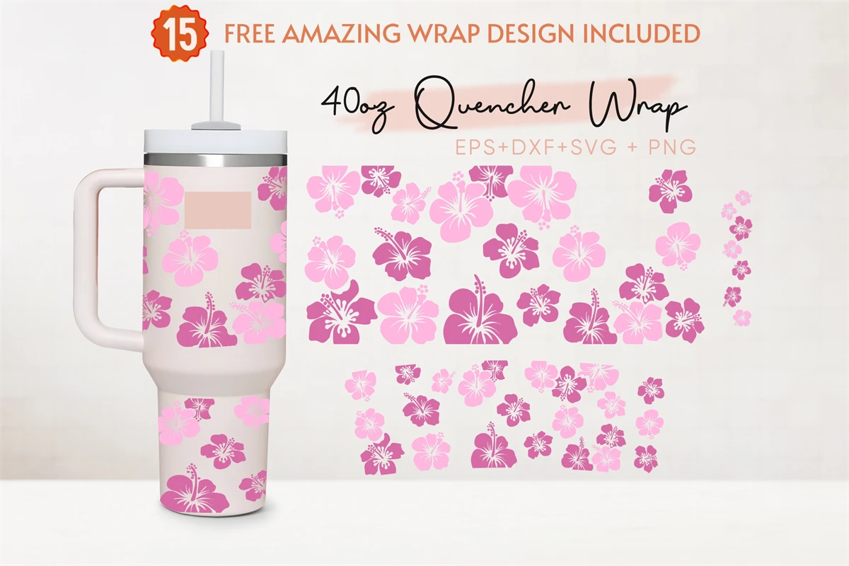 Hibiscus 40oz Quencher Tumbler, Tropical Flower,Tumbler Wrap
