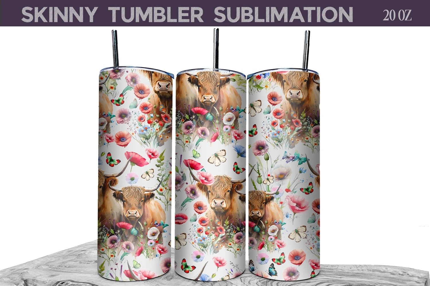 Highland Cow Tumbler Wrap. Cow Floral Tumbler