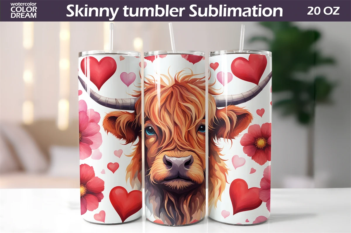 Cute Highland Cow Valentine Tumbler. Valentines Day Tumbler Wrap