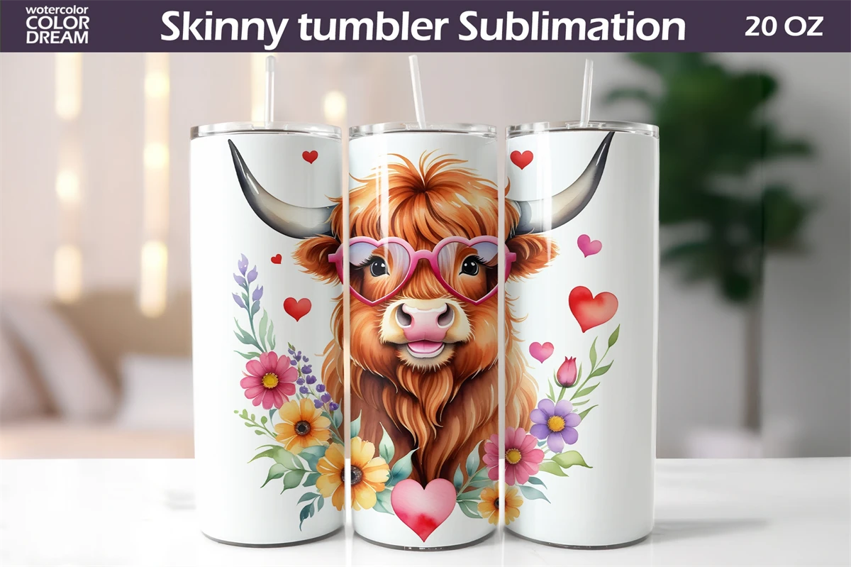 Cute Highland Cow Valentine Tumbler. Valentines Day Tumbler Wrap