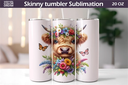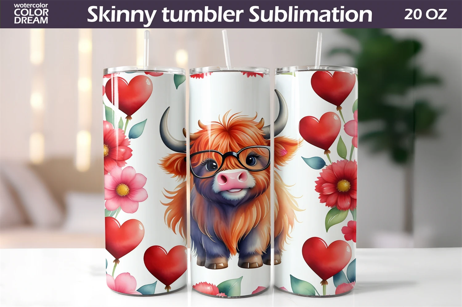 Cute Highland Cow Valentine Tumbler. Valentines Day Tumbler Wrap