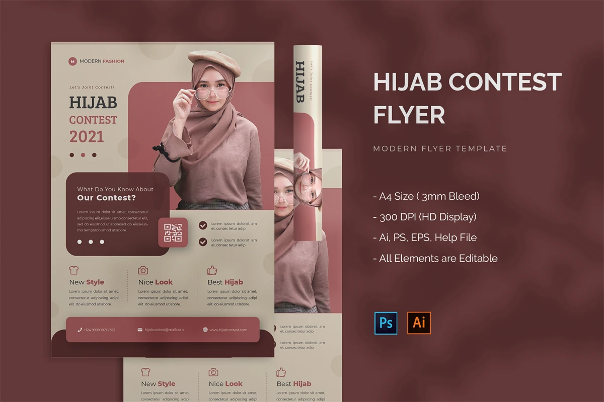 Hijab Contest - Flyer. This Flyer template is designed for your company's business needs. very clean and elegant, and also easily edited and adjusted to your liking