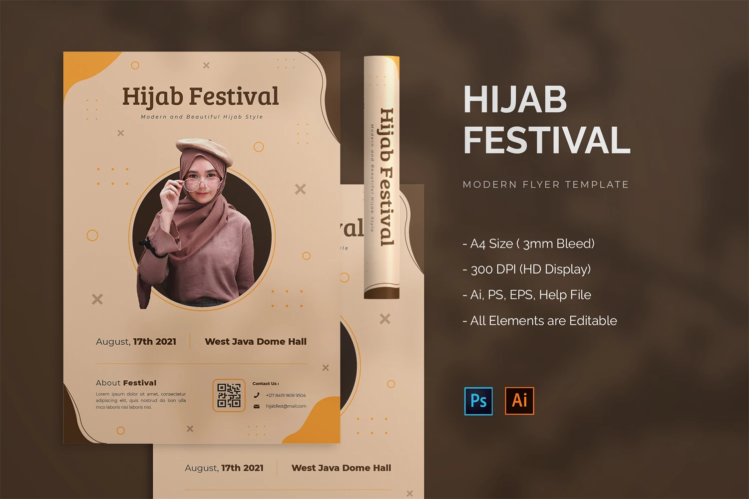 Hijab Festival - Flyer. This Flyer template is designed for your company's business needs. very clean and elegant, and also easily edited and adjusted to your liking