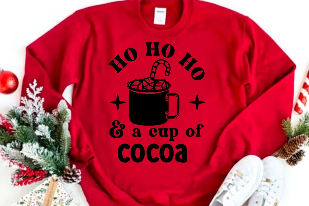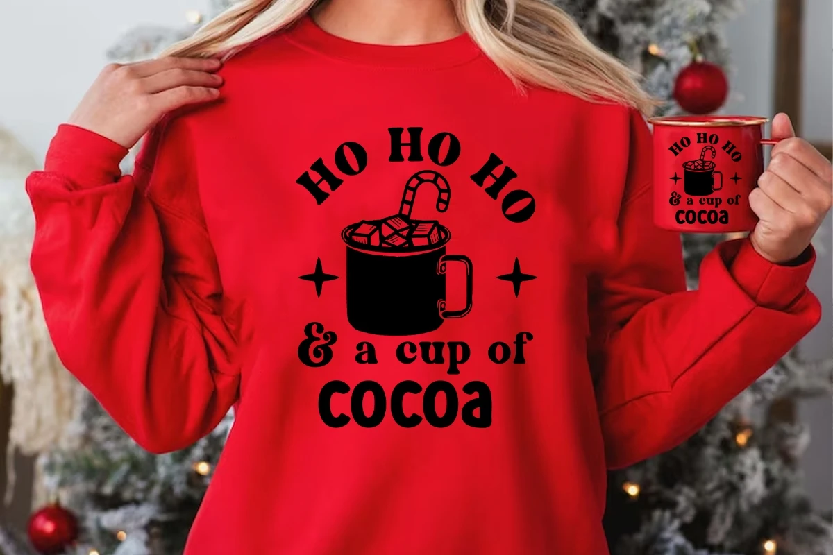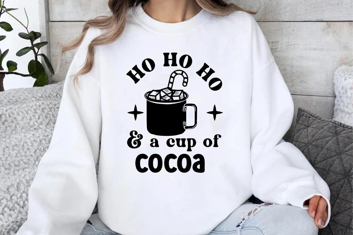 Ho Ho Ho & A Cup Of Cocoa Vintage Christmas SVG Design