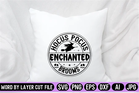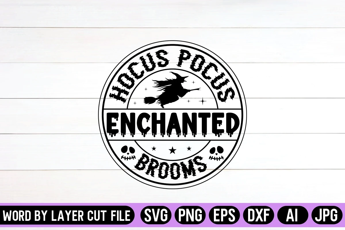 Hocus Pocus Enchanted Brooms SVG Round Sings Design