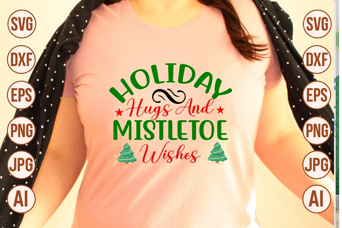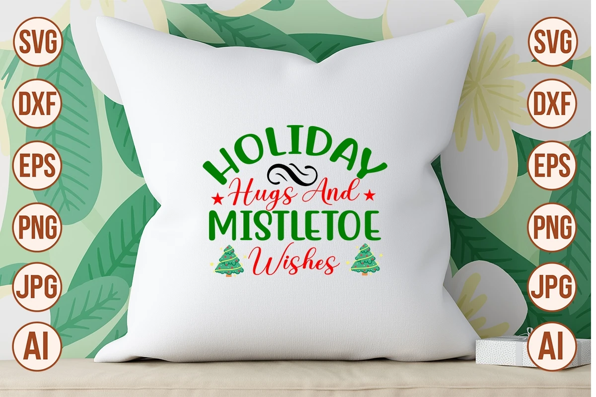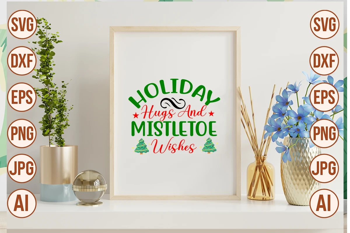 Holiday Hugs And Mistletoe Wishes SVG Cut File Svg designs