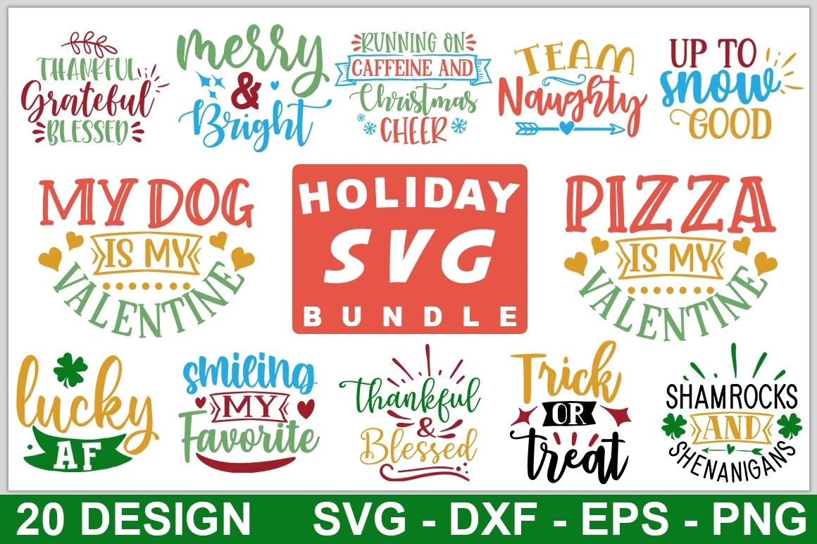 This bundle includes 20 Holiday Quotes Designs.