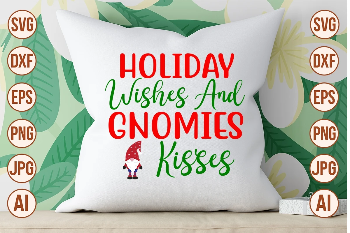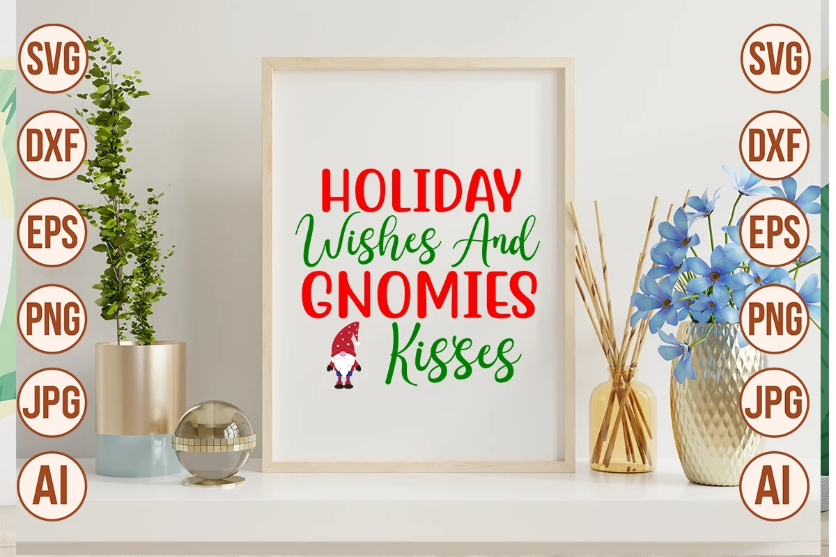 Holiday Wishes And Gnomies Kisses SVG Cut File