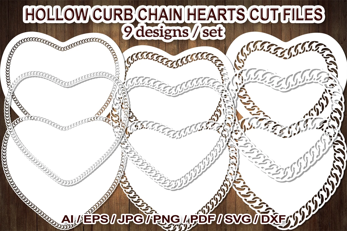 Hollow Curb Chain Style 9 designs heart shape border frames, SVG Clipart Cut Files for your creative DIY projects and Wedding Decor, or Home Decorations. Perfect for the papercut, scrapbooking, card stock, home decor, wedding decor, and other DIY projects. Options are endless! All designs are about 6x7 inches and come in black color which can easily change the color as your desire.