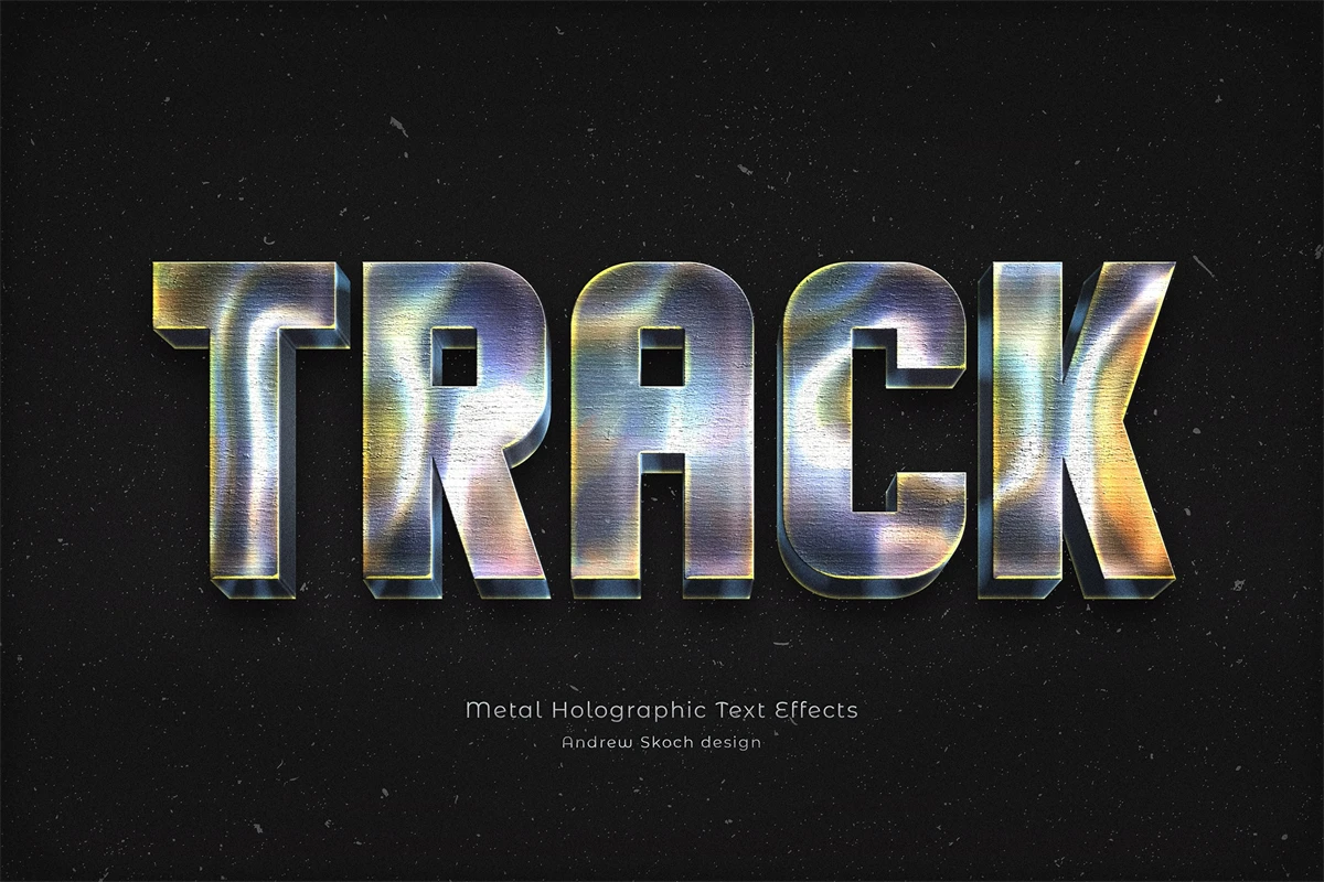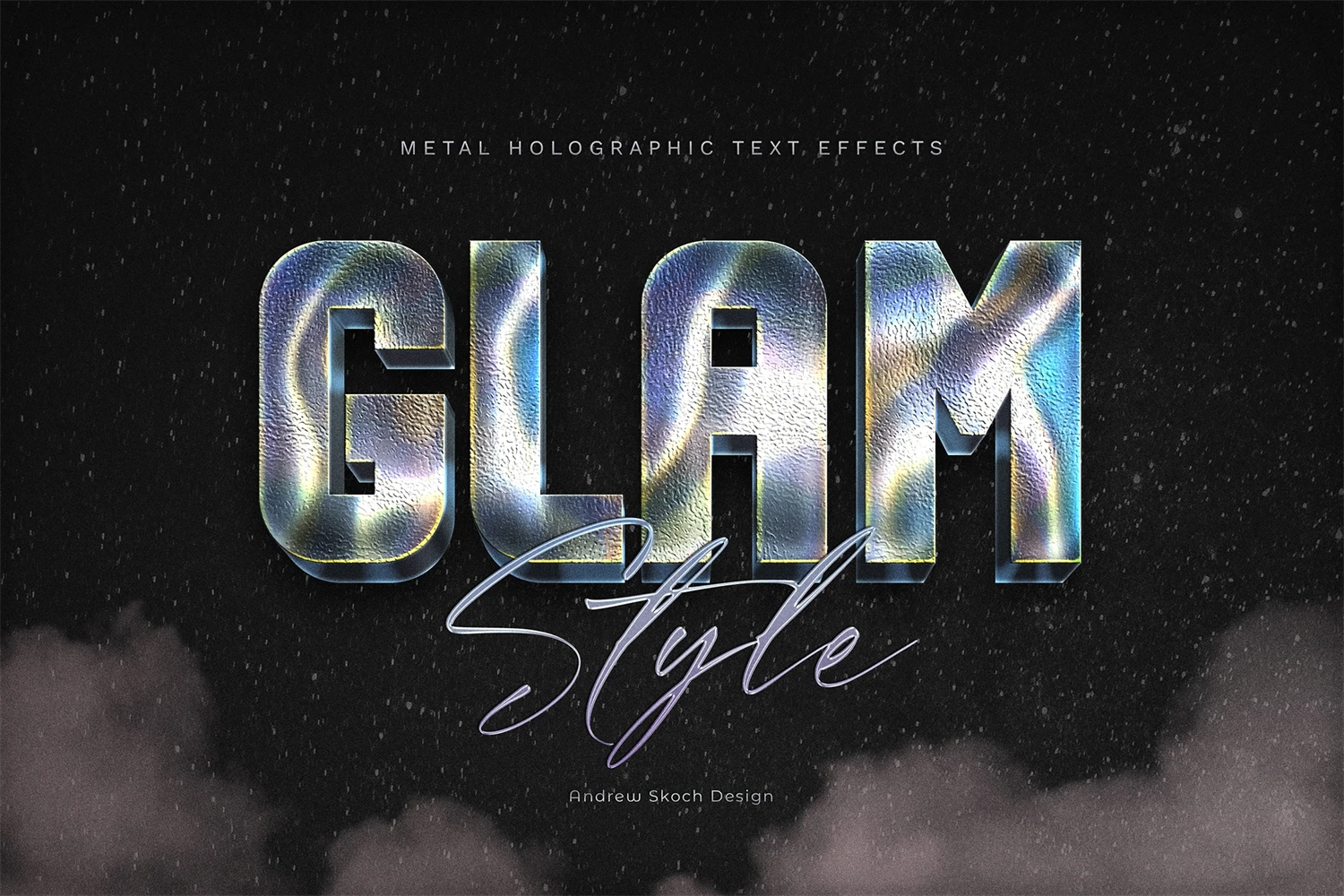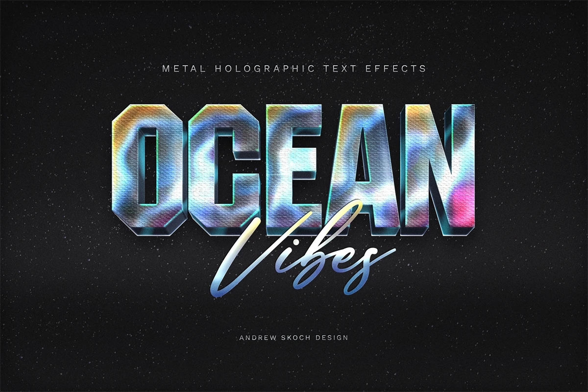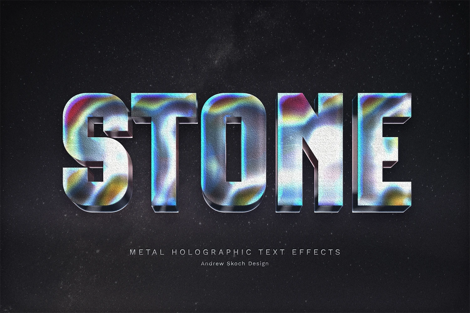 The holographic design trend has been a huge hit for several years. Be trendy with 6 shiny holographic effects. Its an easy way to present your text, shape or logo in cool shining style. Textured holochrome letters with glowing holographic effect.