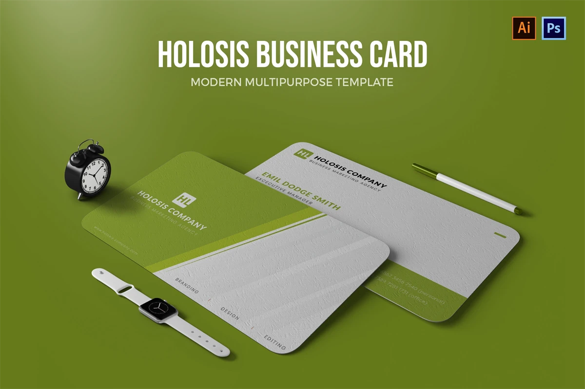 This Holosis - Business Card make your business cards look professional. You can use this business card for, identity, company business cards, Corporate Business, Creative, Blogs, Photographers, Artists, Designers, etc.