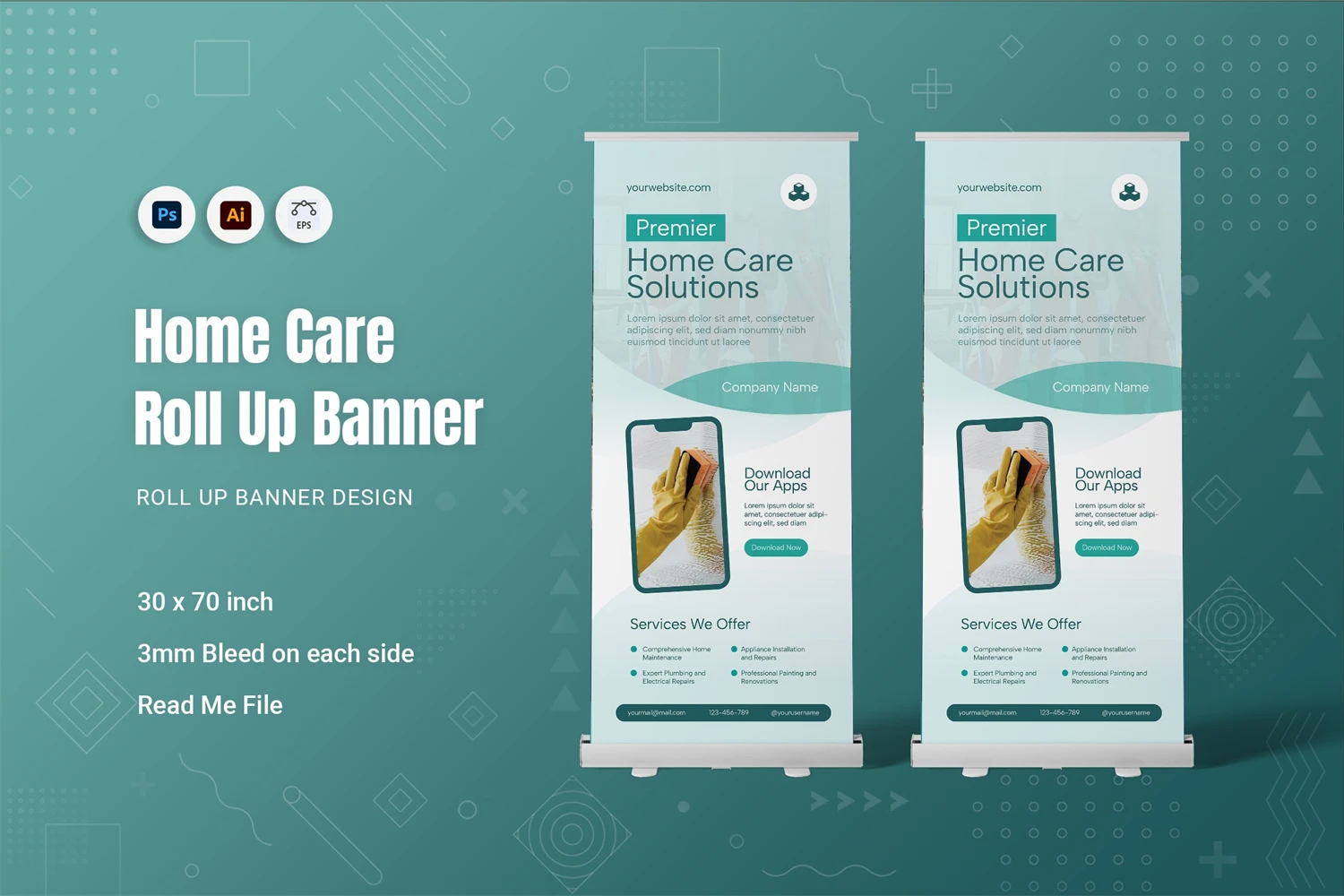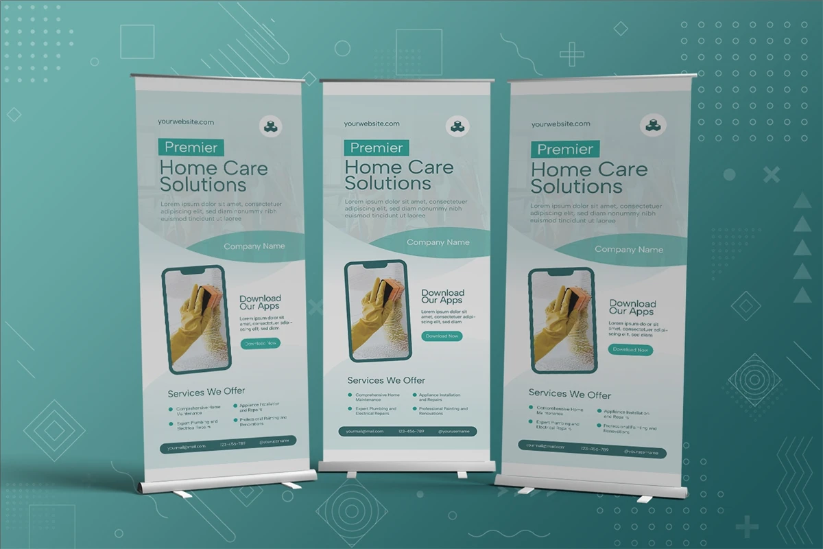 Instantly communicate your brand's through our roll-up banner template. Its standout design is optimized for the impactful presentation of visuals and content alike.