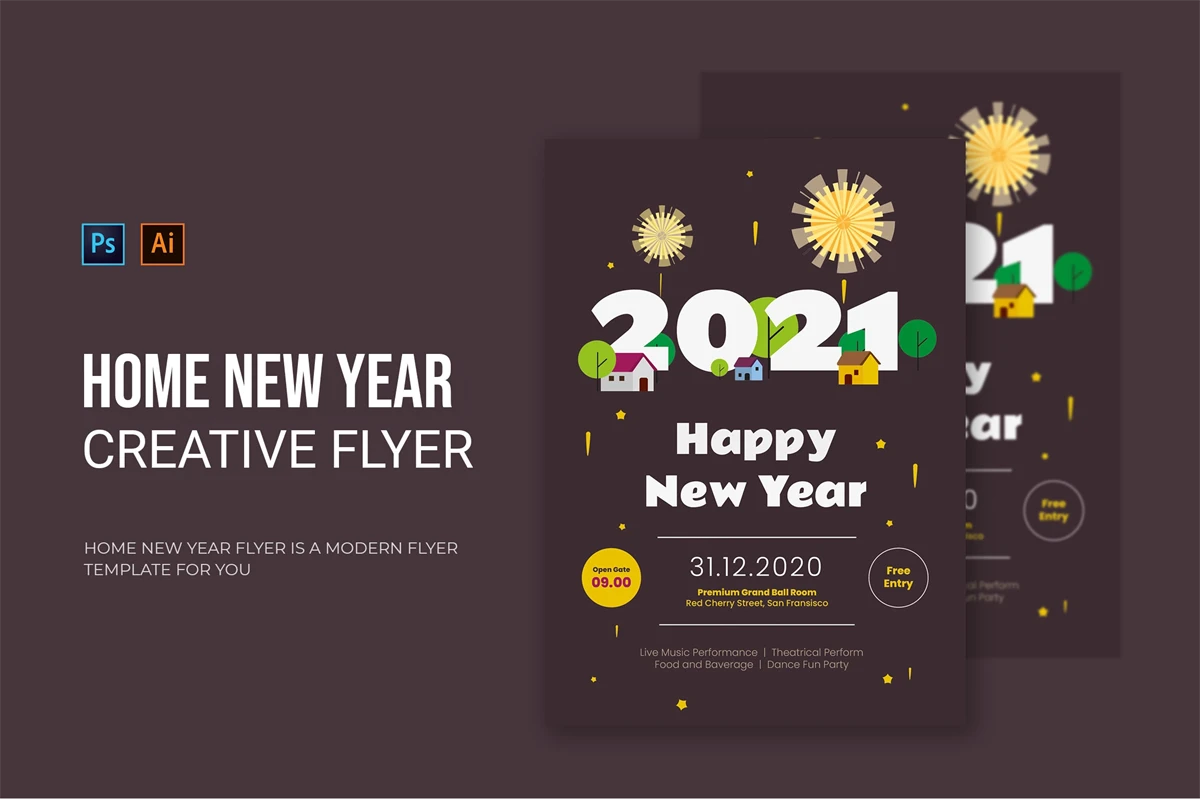 Home New Year - Flyer. This Flyer template is designed for your company's business needs. very clean and elegant, and also easily edited and adjusted to your liking