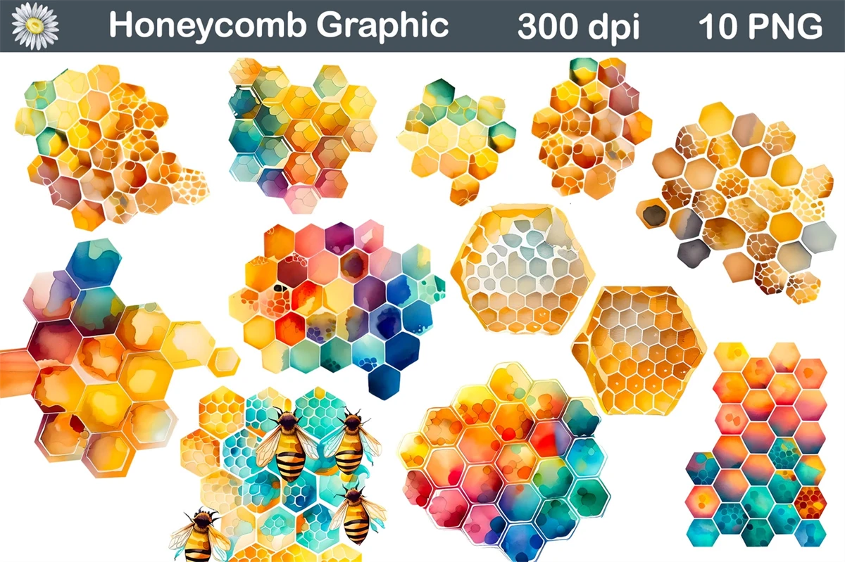 10 images set of Honeycomb Elements for invitations, blog, web design, graphic design, printed paper items, cupcake toppers, backgrounds, scrapbooking & paper craftsand so much more!