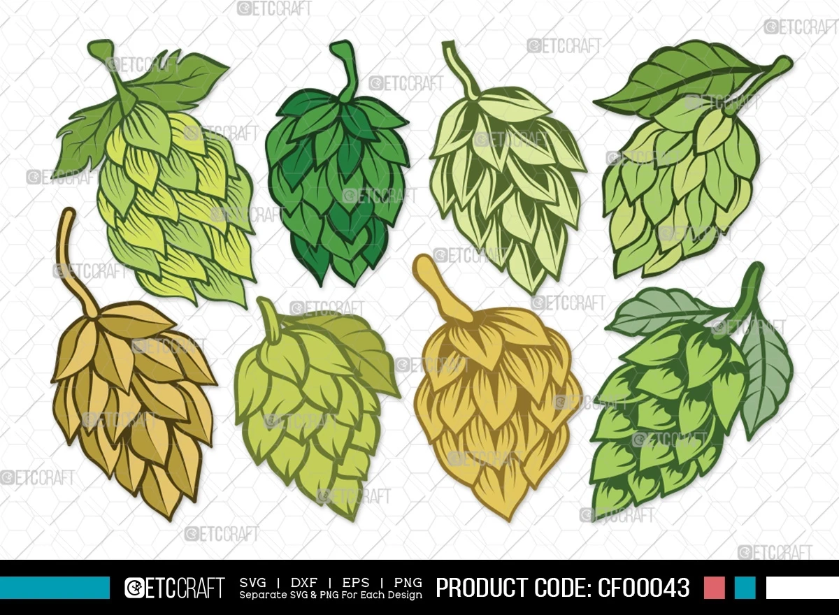 Explore the art of brewing with our Hops Clipart Beer Plant SVG Cut File Bundle. This digital collection captures the essence of hops, a key ingredient in brewing, perfect for beer enthusiasts and creators alike.